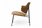 Danish Mid-Century 'Penguin' form lounge / side chair with a bentwood back with two small wings and a beige fabric upholstered slip seat, supported by a black iron frame. (I.B. KOFOD LARSEN).