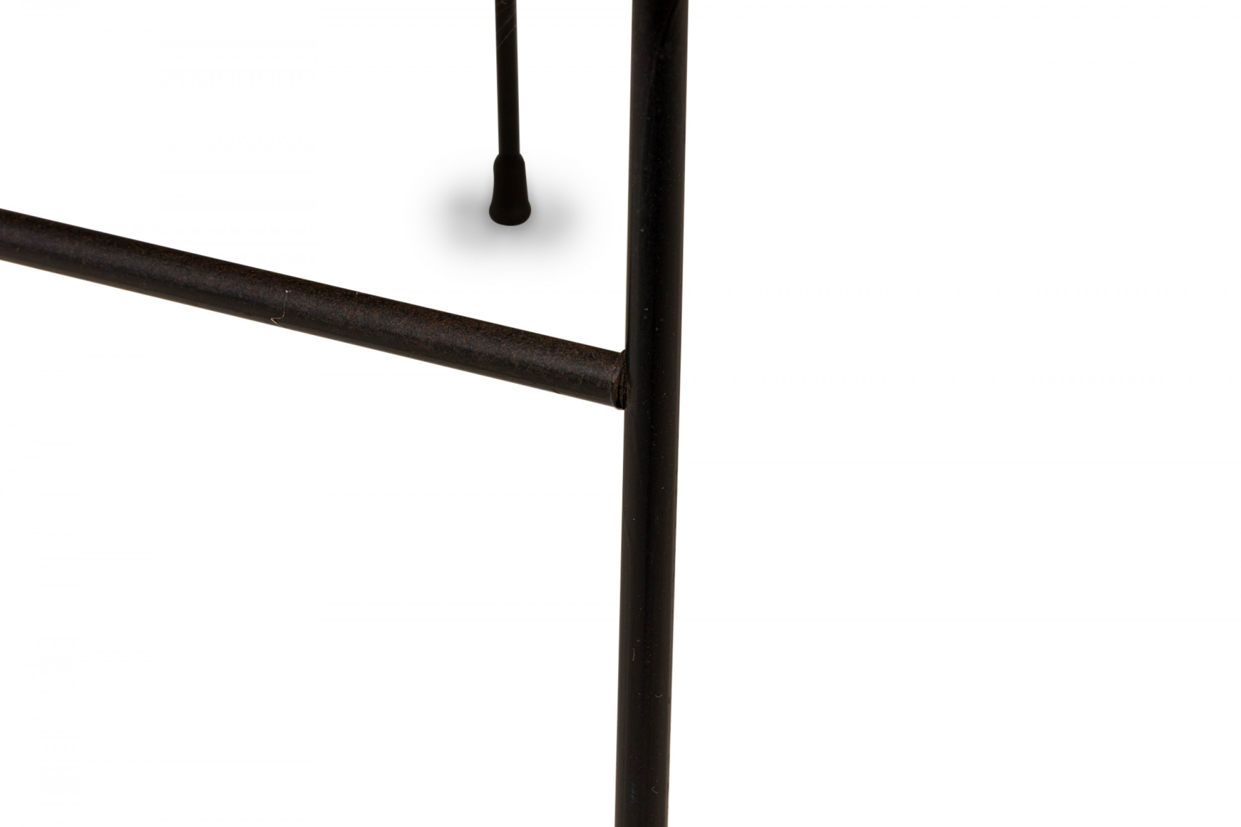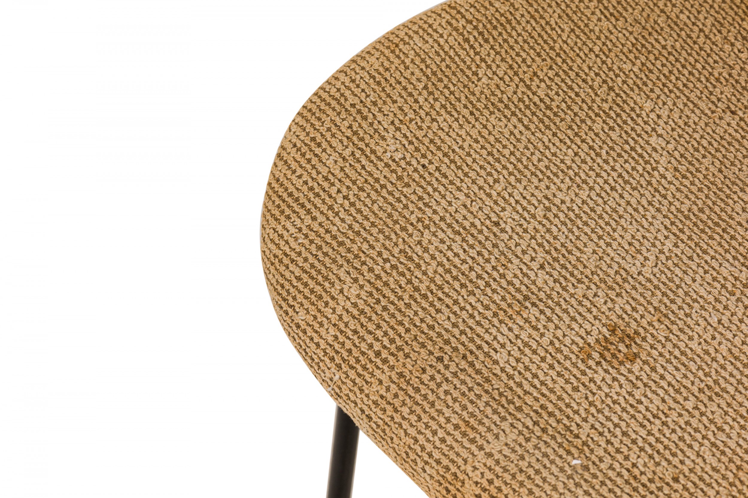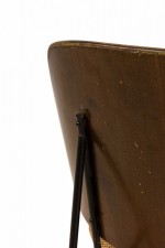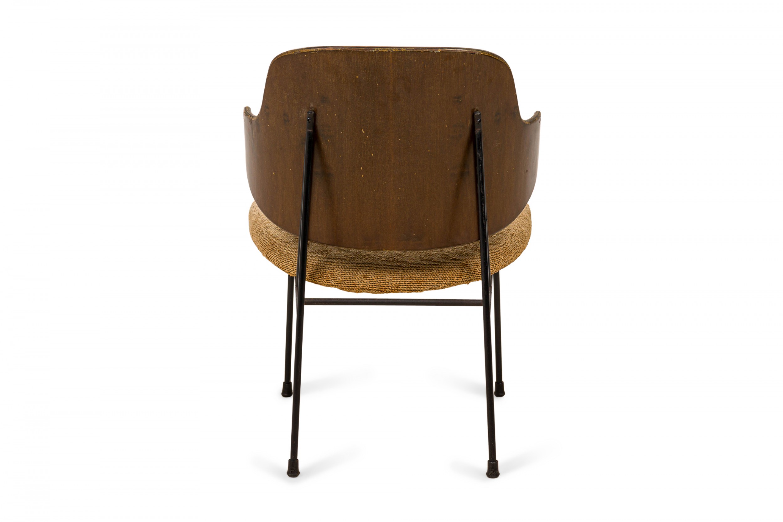 Style: Mid-Century Materials & Techniques: Fabric, iron, metal, upholstered, wood Category: Seating Good; Wear consistent with age and use