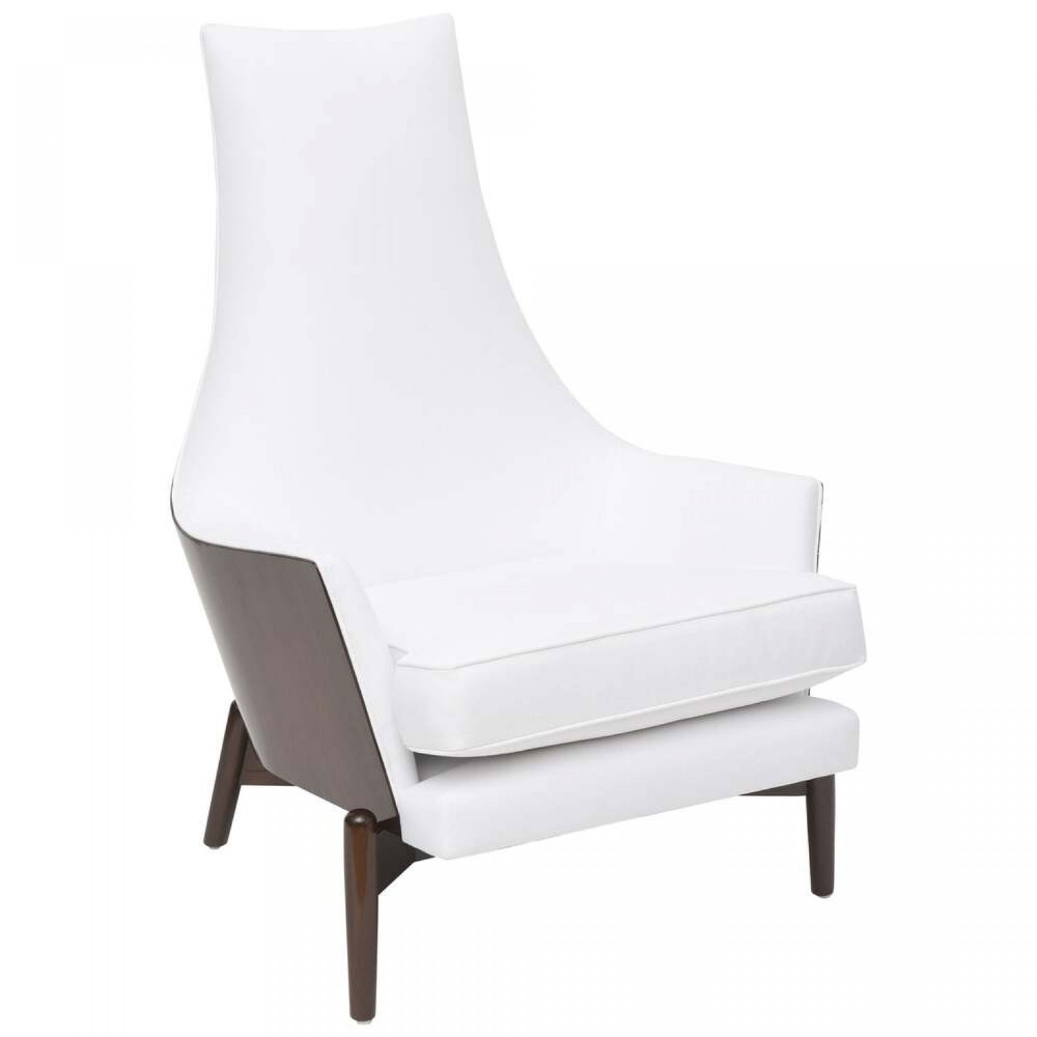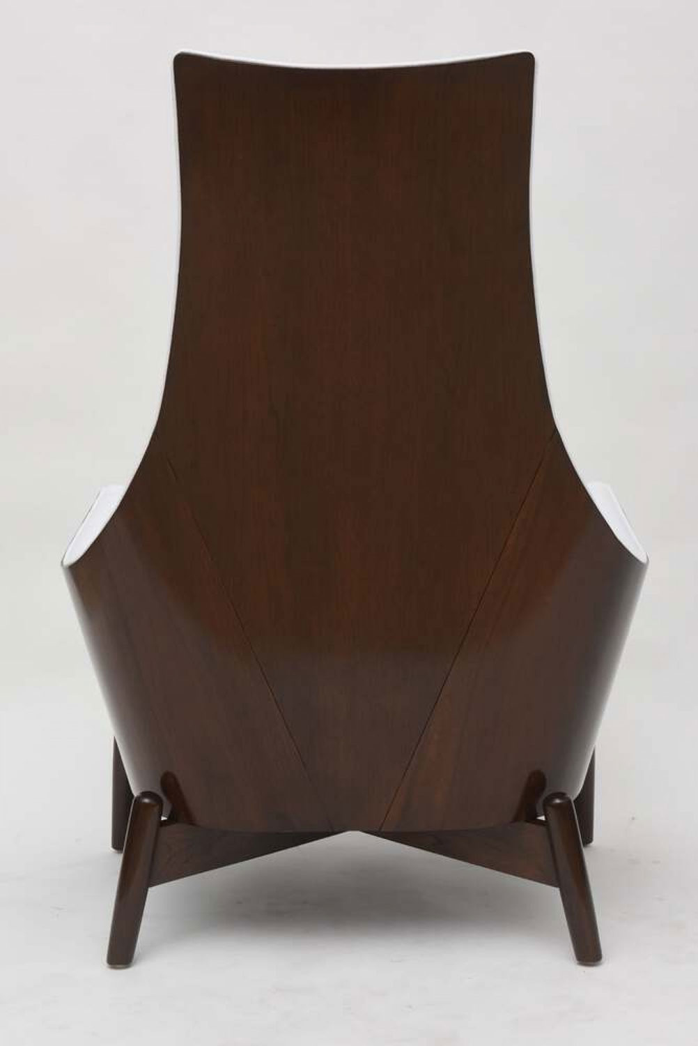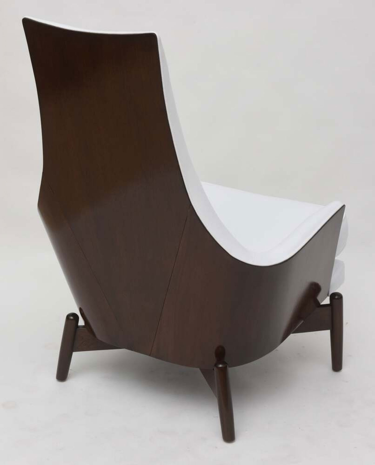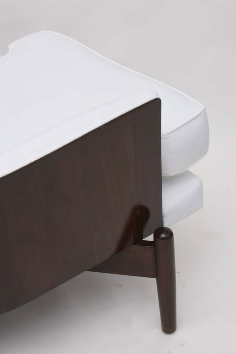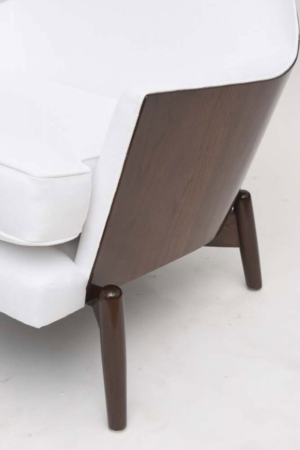 Ib Kofod Larsen Mid-Century Danish Modern Dark Walnut and White Upholstery Armchair