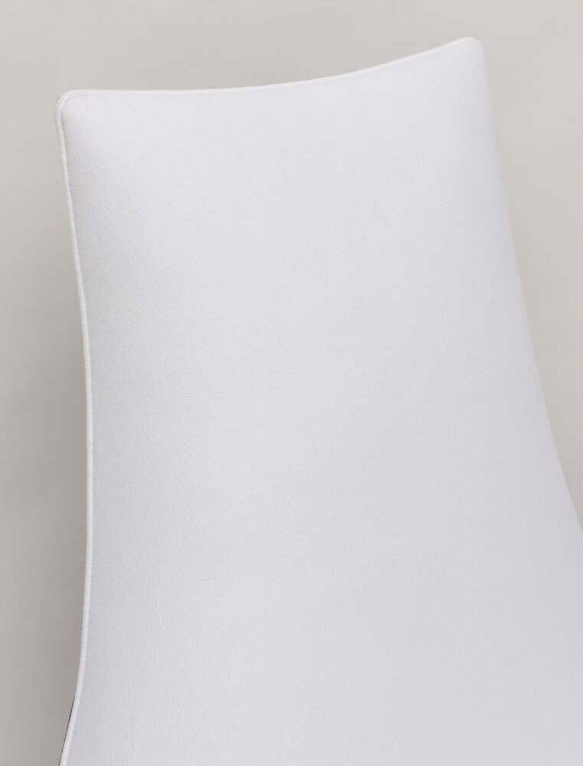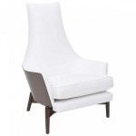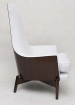 Danish Mid-Century Modern armchair with a high back that curves and incorporates into two square arms, the back, armrests, and seat upholstered in a white fabric upholstery, the backs, armrests and base in a dark finished walnut. (I.B. KOFOD LARSEN).