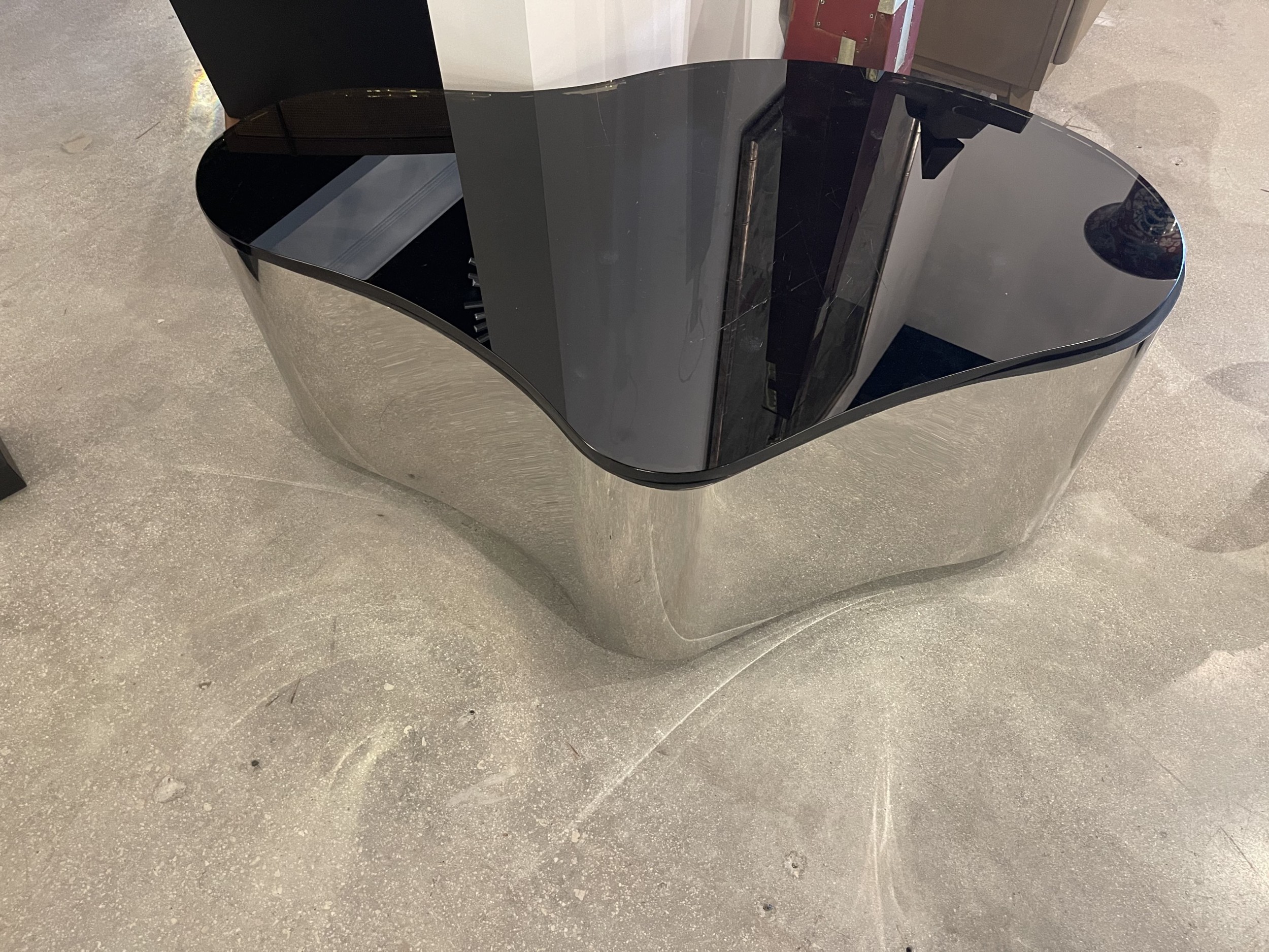 Important Karl Springer Polished Stainless Freeform Coffee Table.