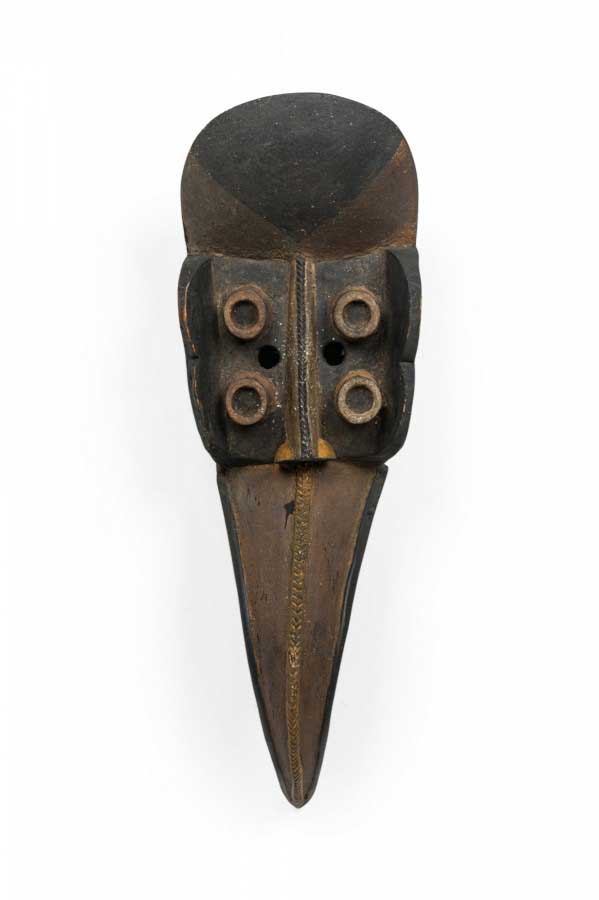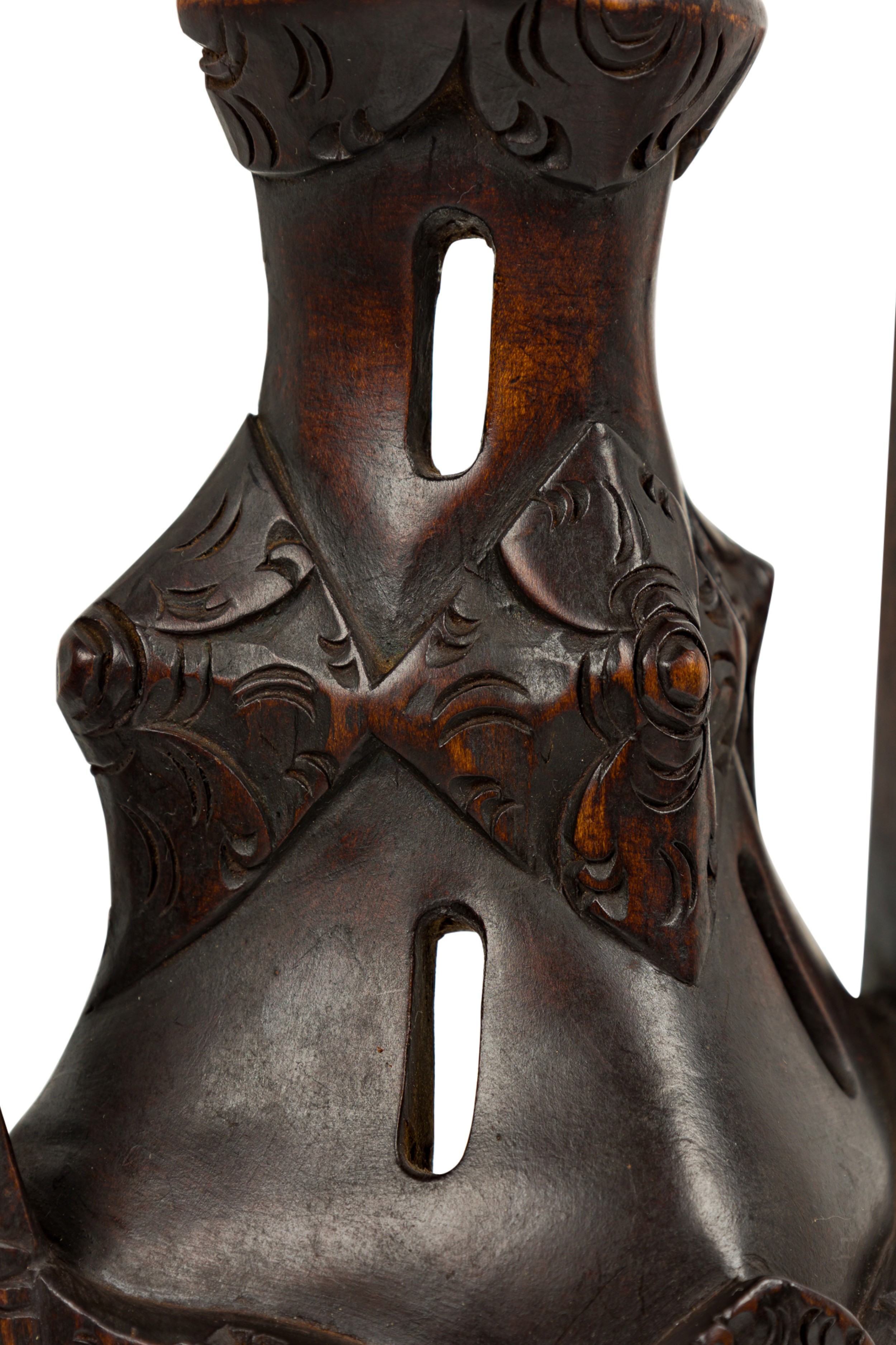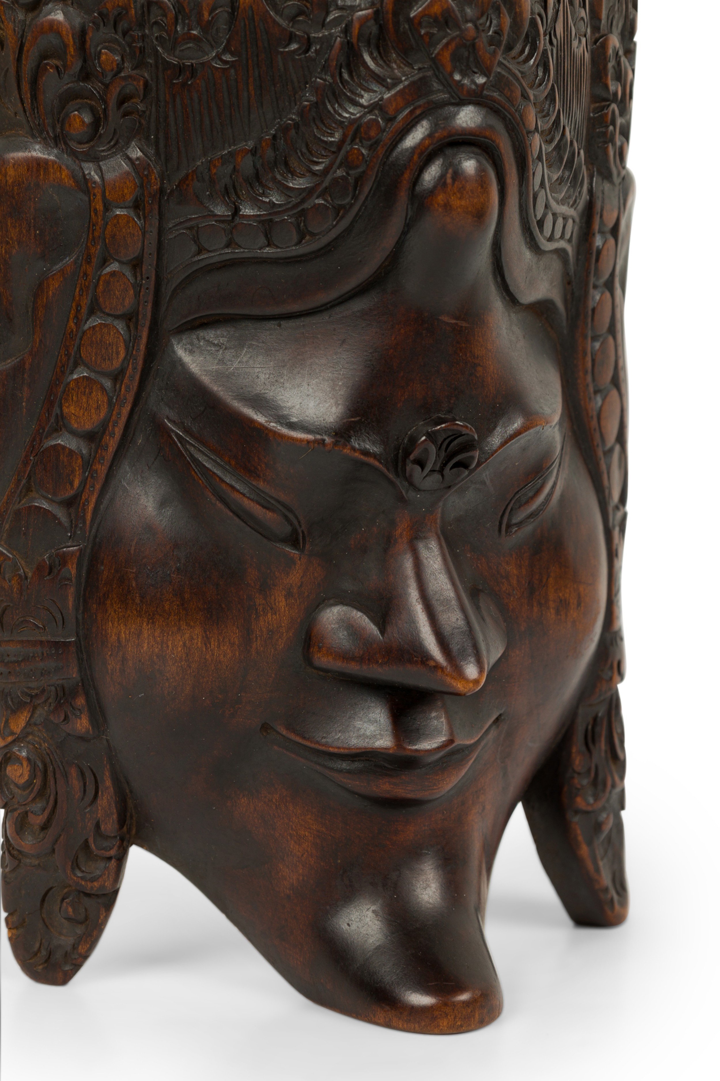 Indonesian Mid-Century hand carved wooden mask in the likeness of Rama with a 3-pronged and tiered crown (See Matching NWL7127B)