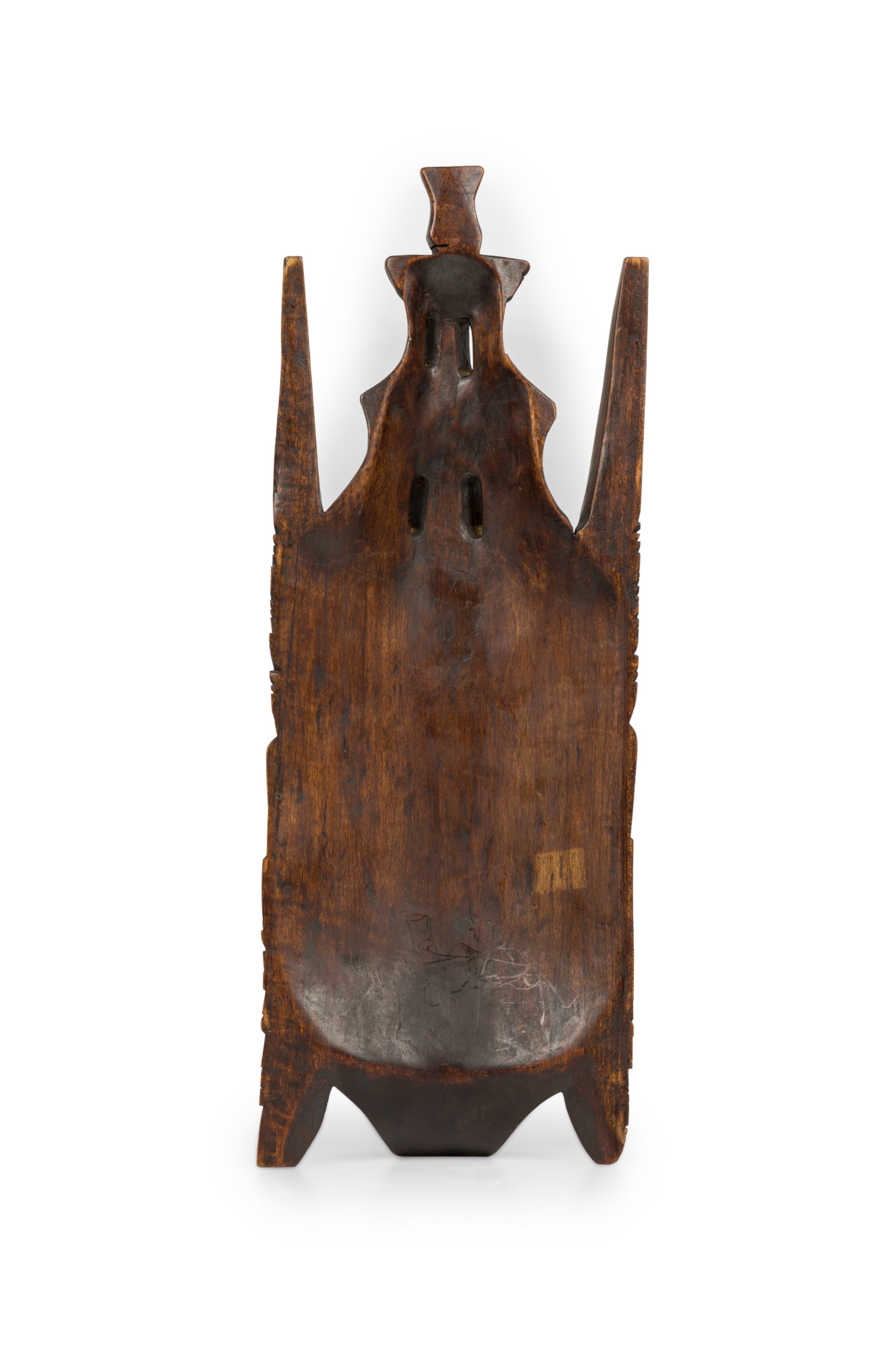 Indonesian Mid-Century hand carved wooden mask in the likeness of Rama with a 3-pronged and tiered crown (See Matching NWL7127B).