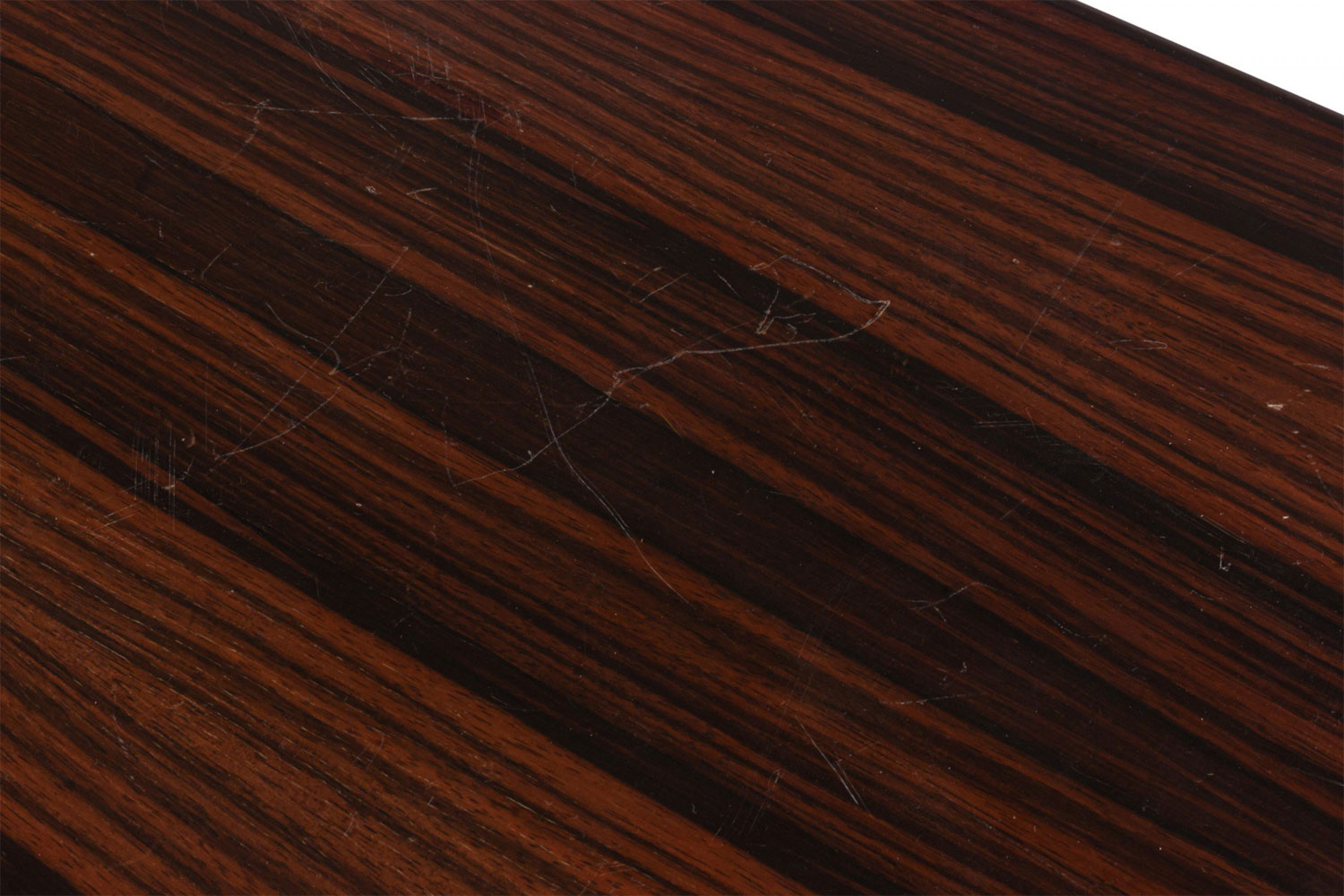 Style: Mid-Century Materials & Techniques: Rosewood, wood Category: Tables, Dining Room Condition: Some damage to veneer. Good; Wear consistent with age and use