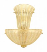 PAIR of Italian Venetian Murano 1940s-Style "RUGIADA" 2 section wall sconces with fluted design clear gold and textured glass with bowl shaped base (PRICED AS PAIR) (Identical pair: NWL6128)