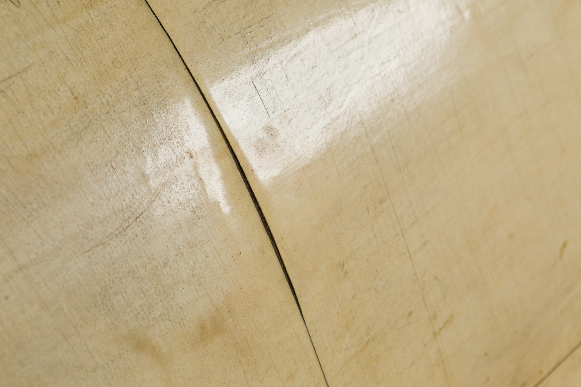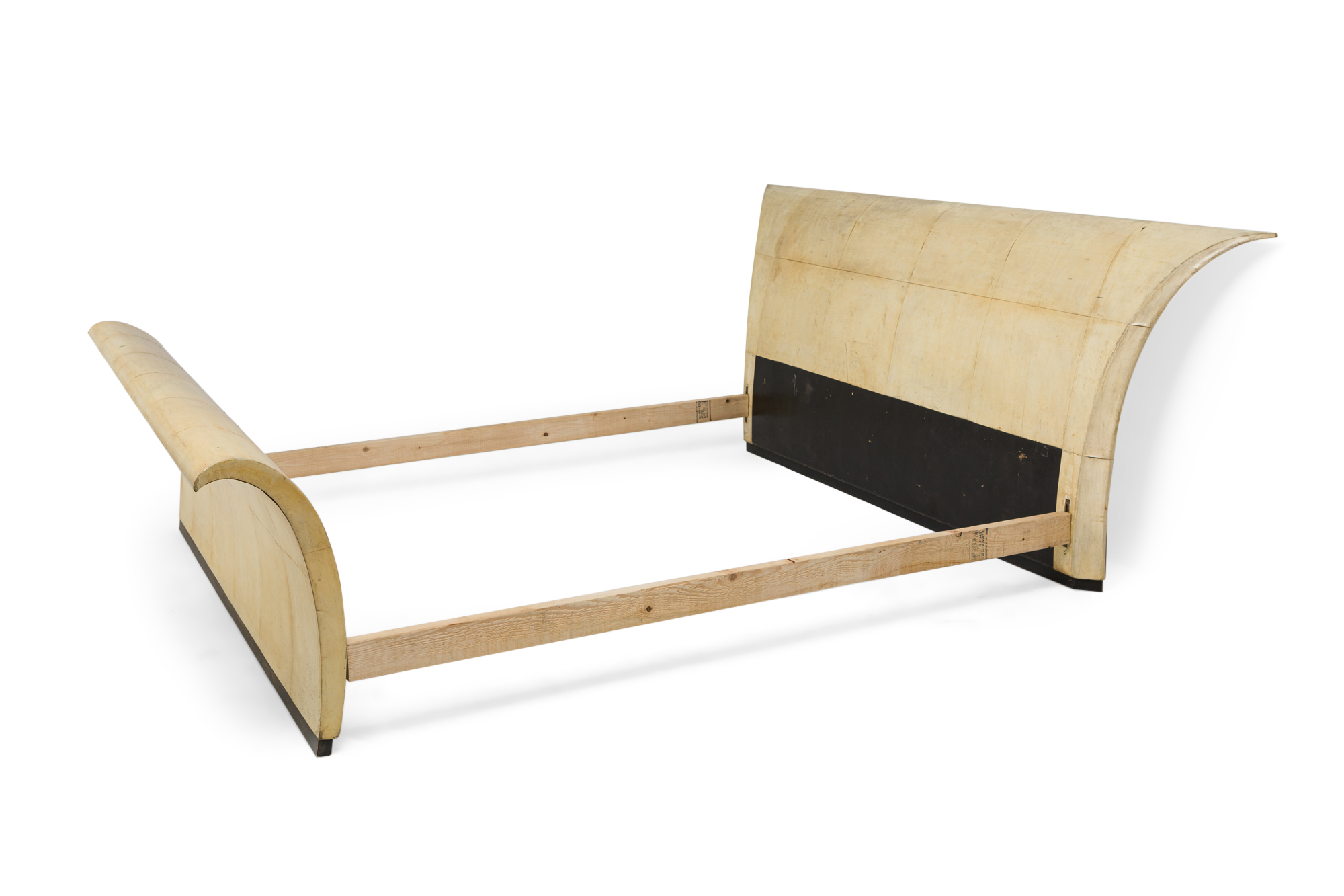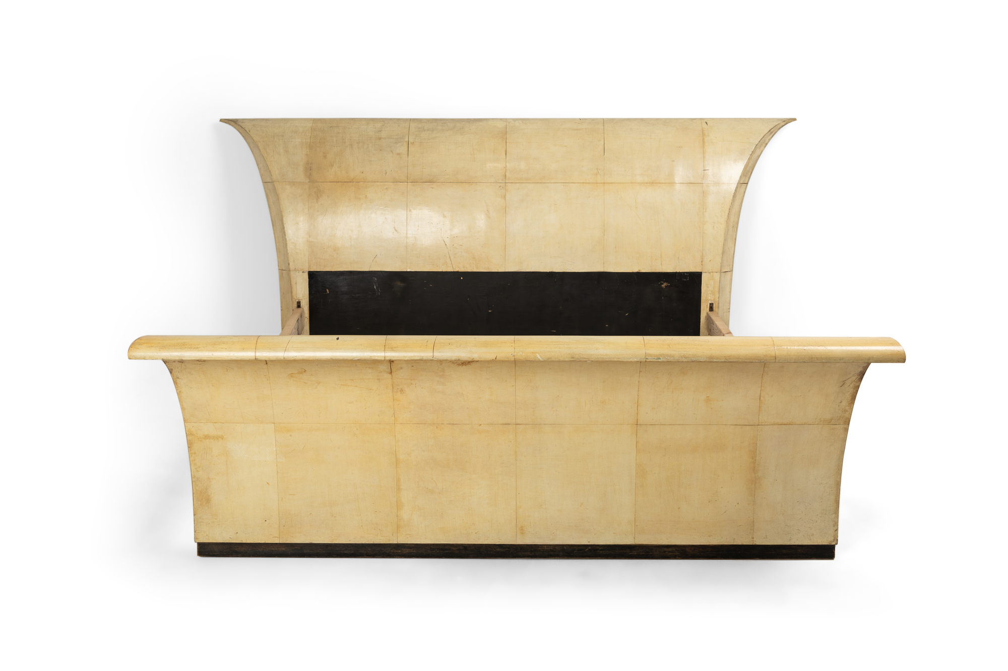 Italian Art Deco (late 1930s) white parchment bed with sleigh design (includes: headboard, footboard, rails) (Attributed to GUGLIELMO ULRICH) (pg 73 of Domus No 143 Nov 1939).