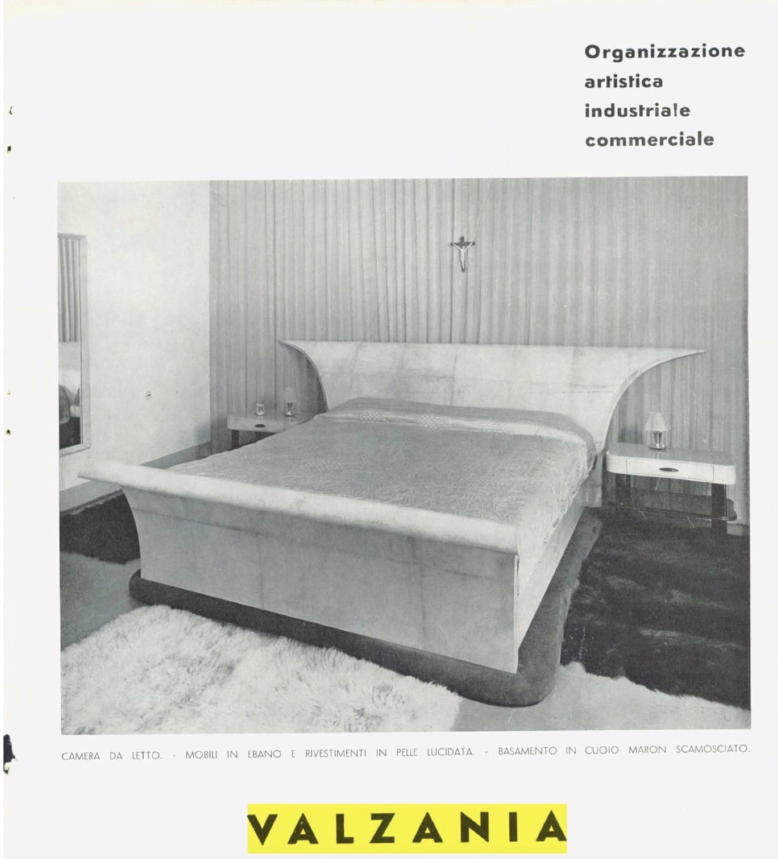 Italian Art Deco (late 1930s) white parchment bed with sleigh design (includes: headboard, footboard, rails) (Attributed to GUGLIELMO ULRICH) (pg 73 of Domus No 143 Nov 1939)