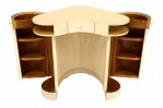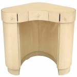 Italian Art Deco white parchment diminutive triangular form lady's vanity /dressing table with a drawer centered by 2 side drawers and 2 doors..