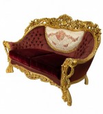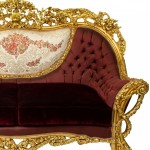 Italian Baroque style 20th c. settee with gilt wood filigree frame & burgundy & cream button-tufted upholstery with embroidered flowers (Matching settee: AGO054, arm chairs: AGO053, AGO057, Full Set: AGO053A)