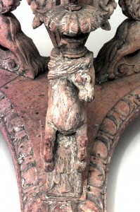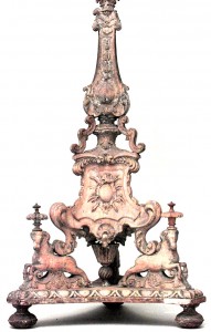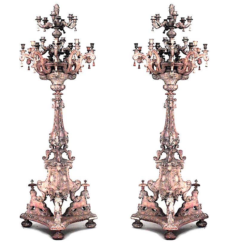 PAIR of Italian Baroque-style (19th Century) stripped pine, beech & poplar 24 arm floor torchiere with 3 scrolling legs on horses (in the style of PIRANESI).