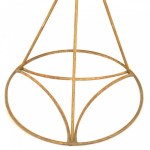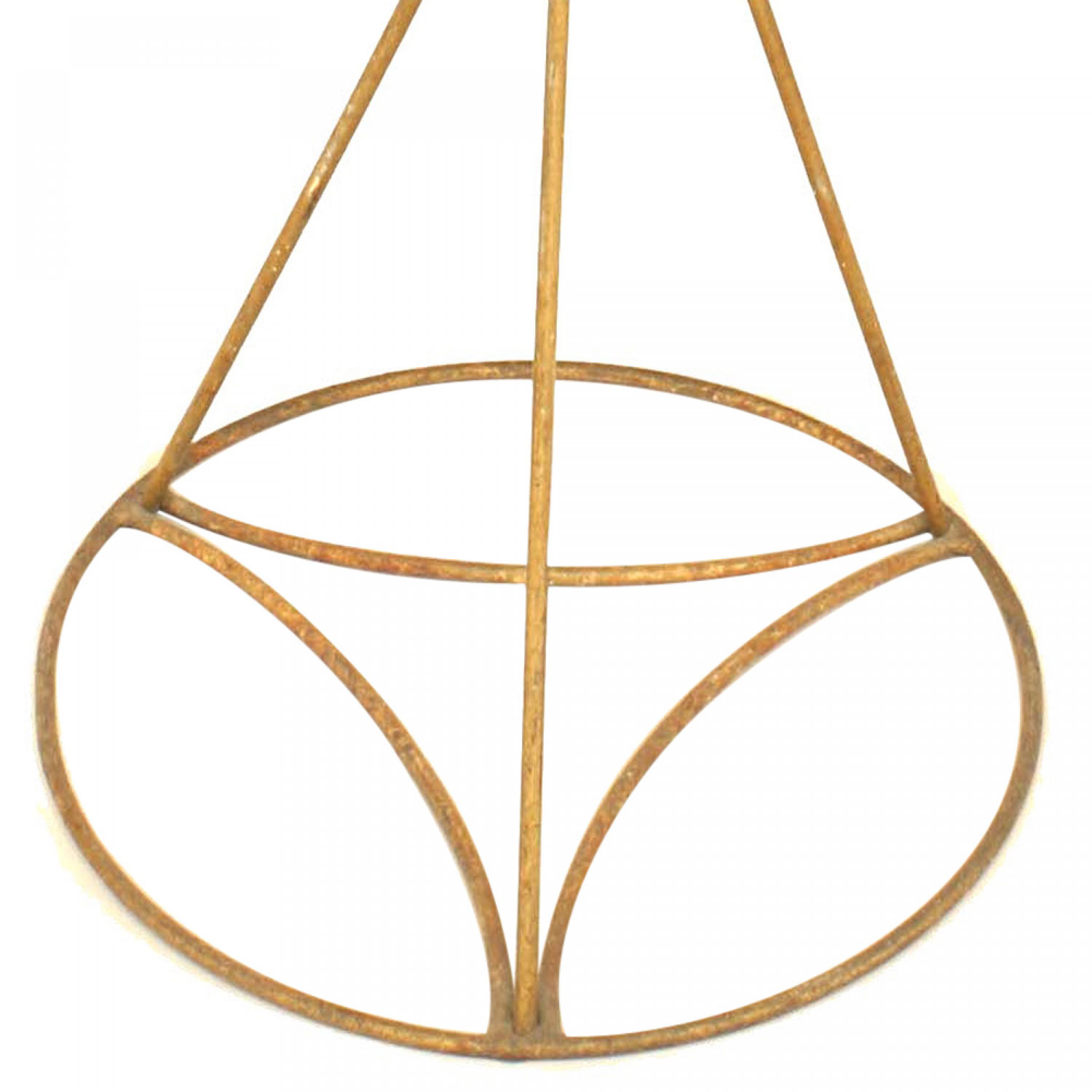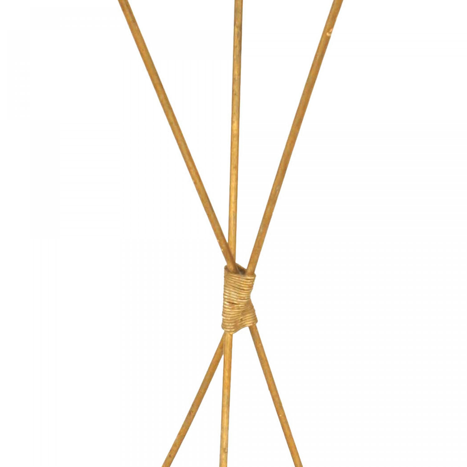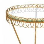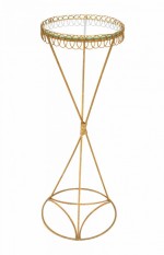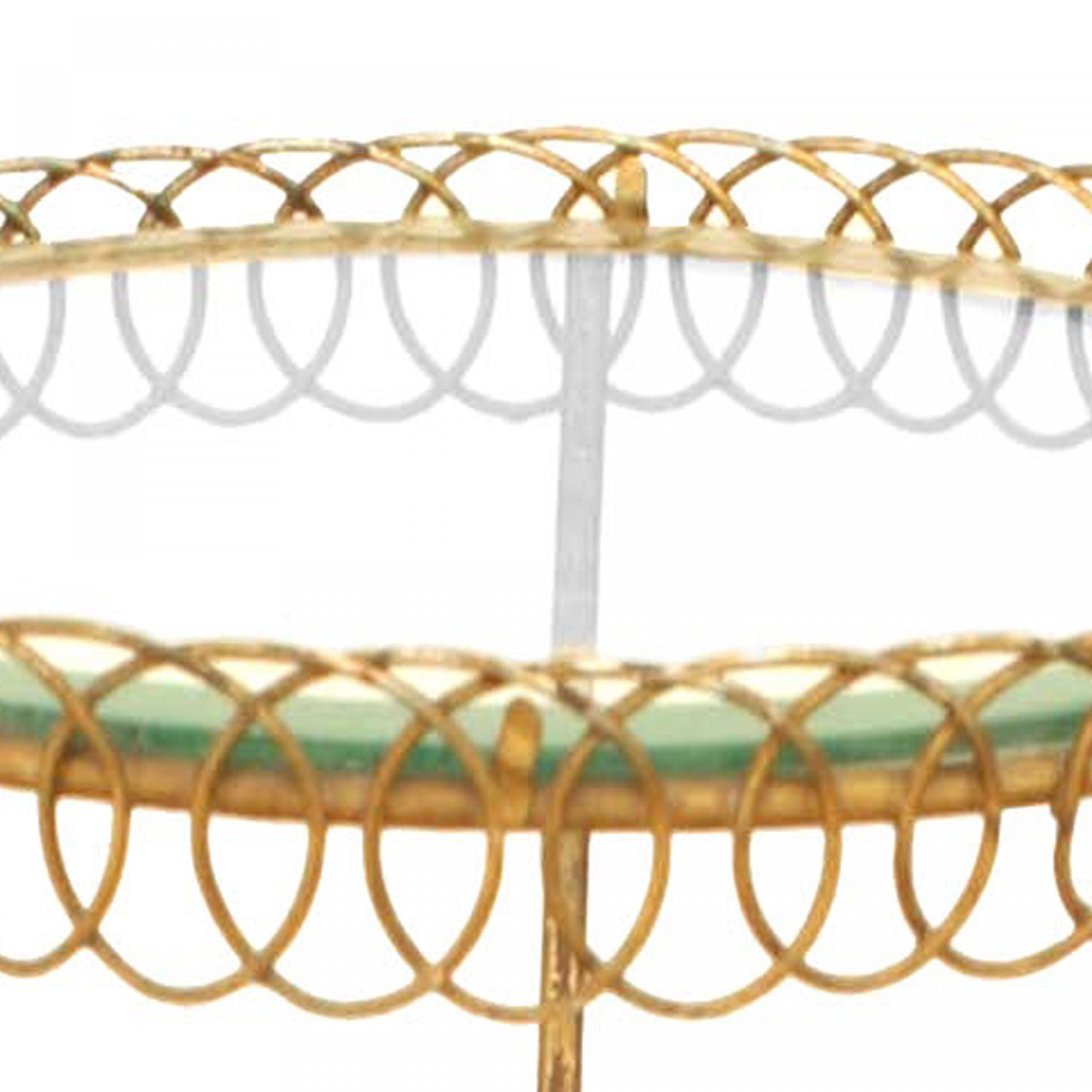 Italian 1940s gold painted metal pedestal with a round bevelled glass top surrounded by an open circular border and supported on 3 crossed legs with a round base.