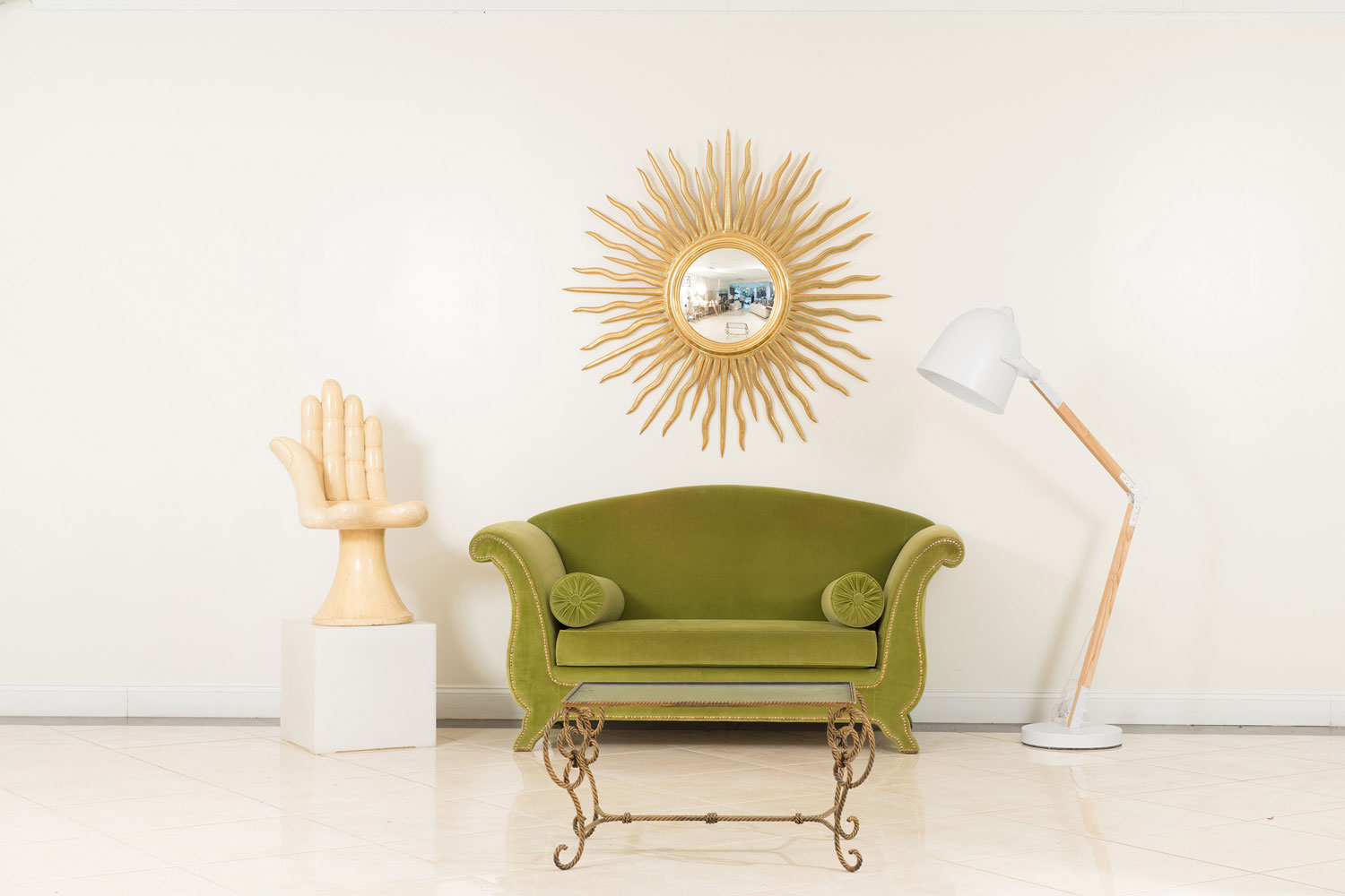 Style: French Materials & Techniques: Brass, velvet Category: Seating