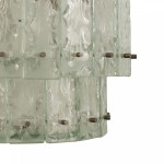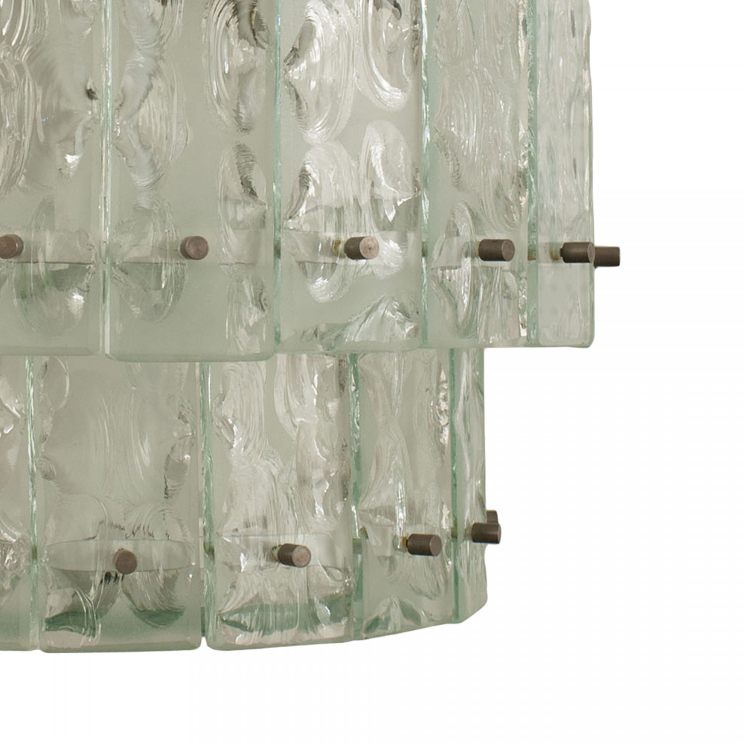 Italian 1940s acid etched and textured glass panel round tiered lantern with a frosted glass round bottom panel..