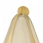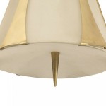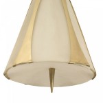 Italian 1940s gilded brass conical formed lantern with ovoid shaped white glass panels and a round glass bottom having a pointed finial..