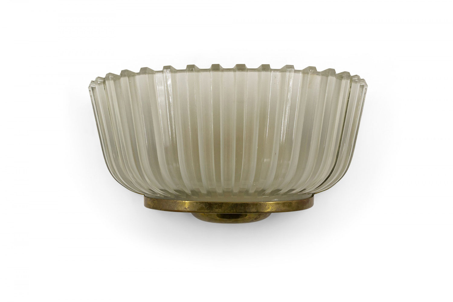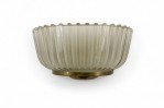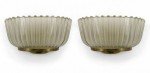 PAIR of Italian Mid-Century (1940's) molded frosted glass wall sconces with fluted design and ½ round shape supported in a brass frame. (att: BAROVIER ET TOSO) (PRICED AS PAIR)