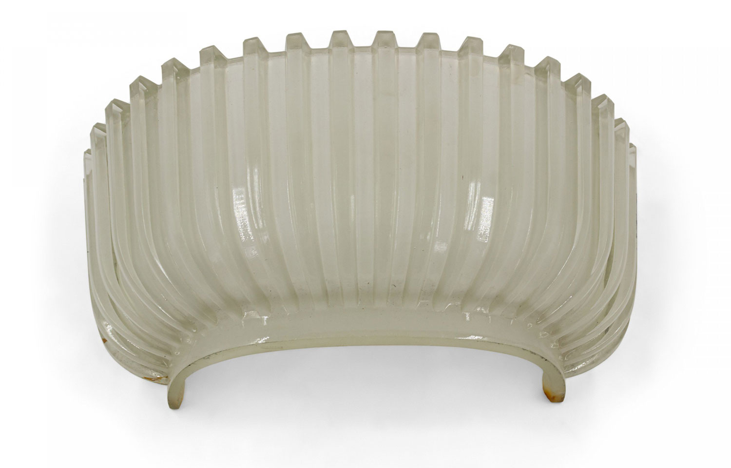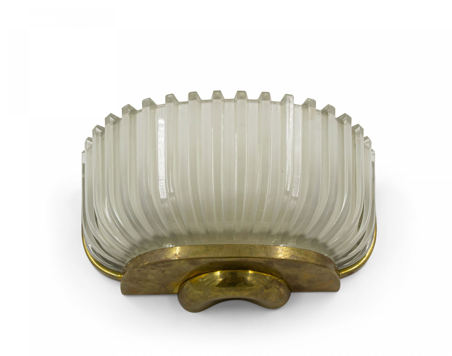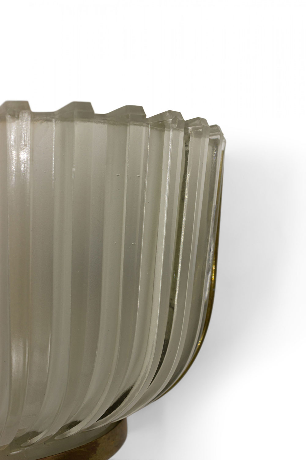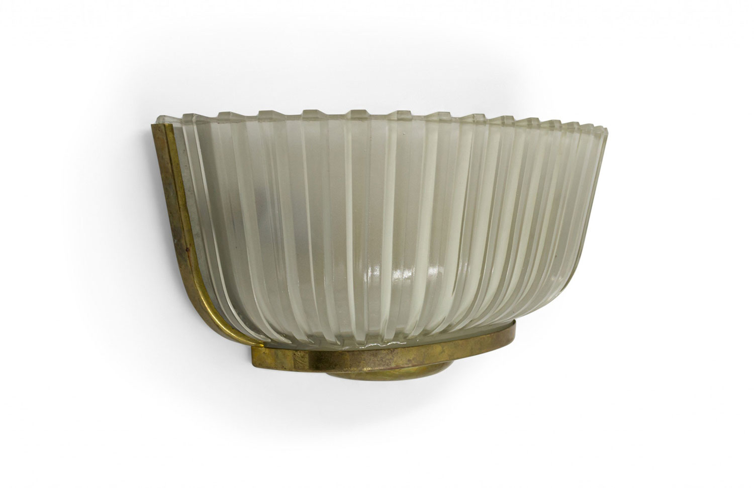 PAIR of Italian Mid-Century (1940's) molded frosted glass wall sconces with fluted design and ½ round shape supported in a brass frame. (att: BAROVIER ET TOSO) (PRICED AS PAIR).