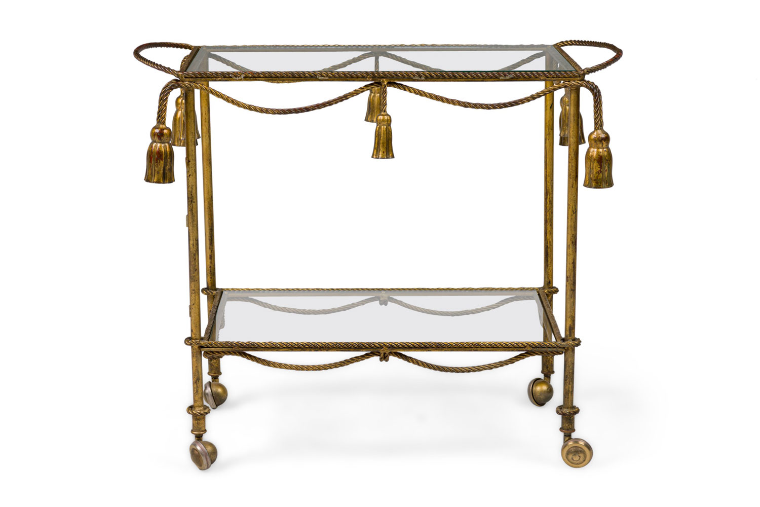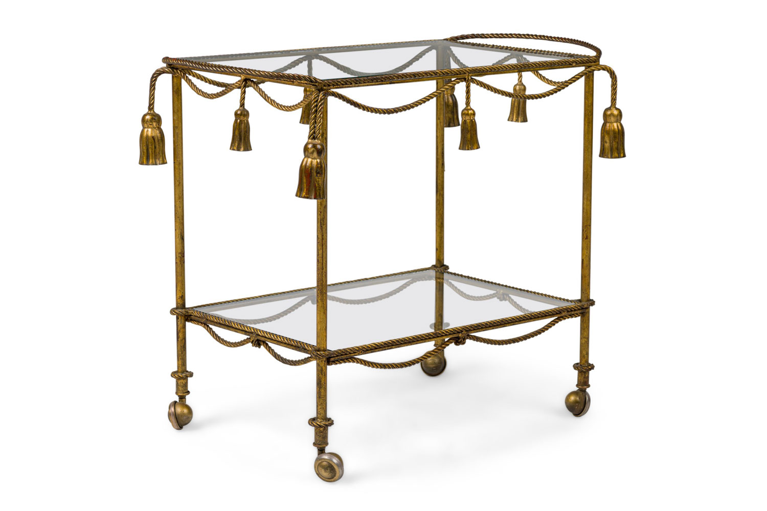 Italian Mid-Century Gilt Metal Tassle Bar Cart