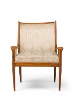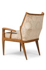 Gio Ponti Style Italian Mid-Century Walnut and Damask Curved Back Armchair