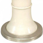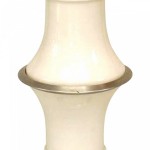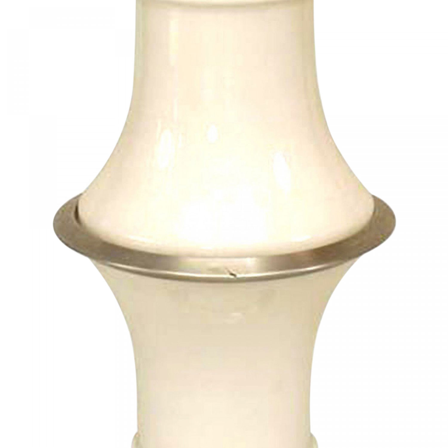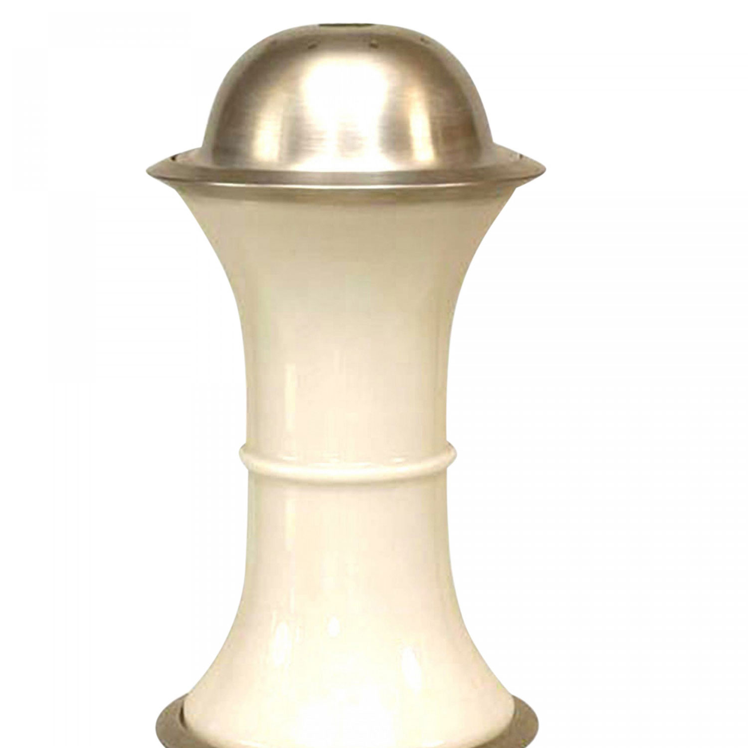 Italian Post-War Design (1960s) low floor lamp with 2 white glass sections separated by aluminum fittings with an aluminum base and round top cover..