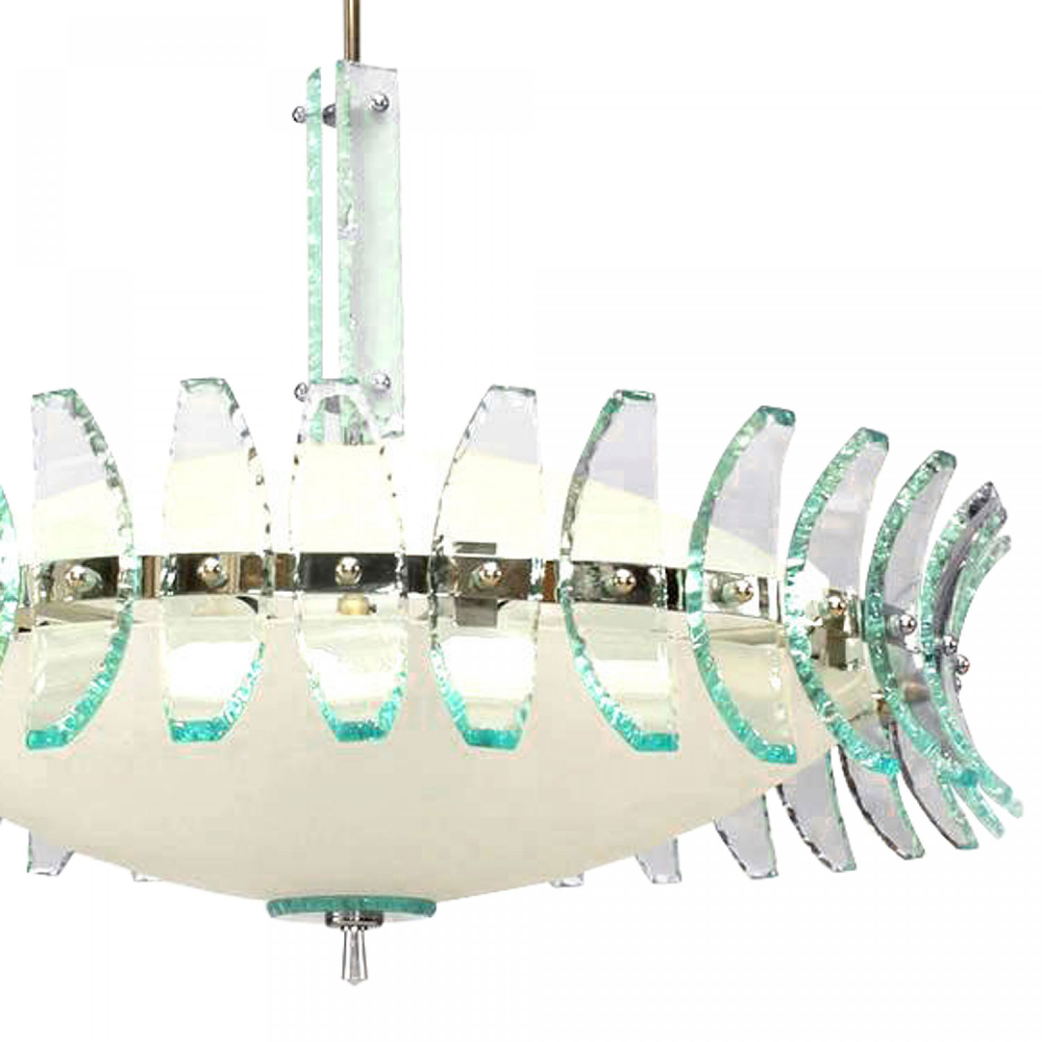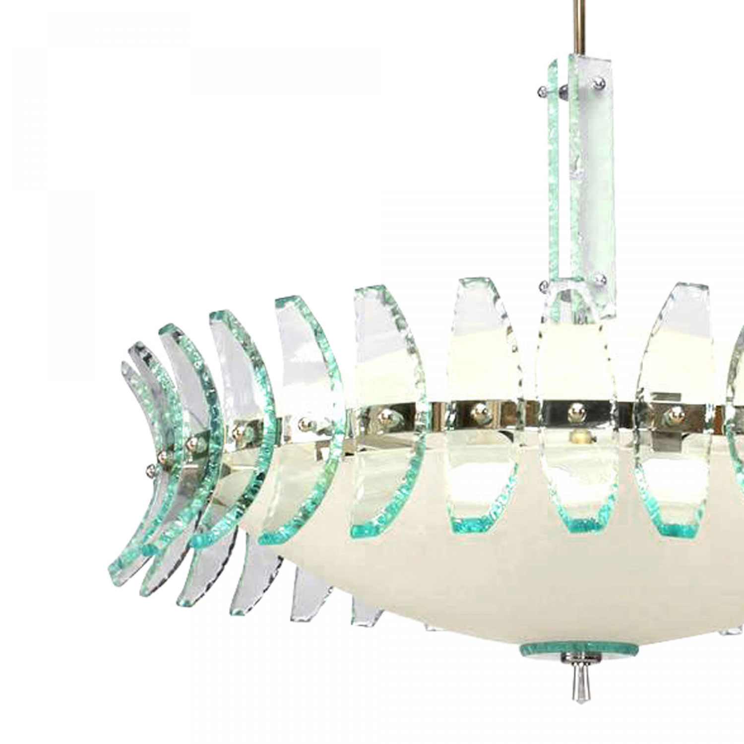 Fontana Arte Italian Mid-Century Glass and Chrome Chandelier