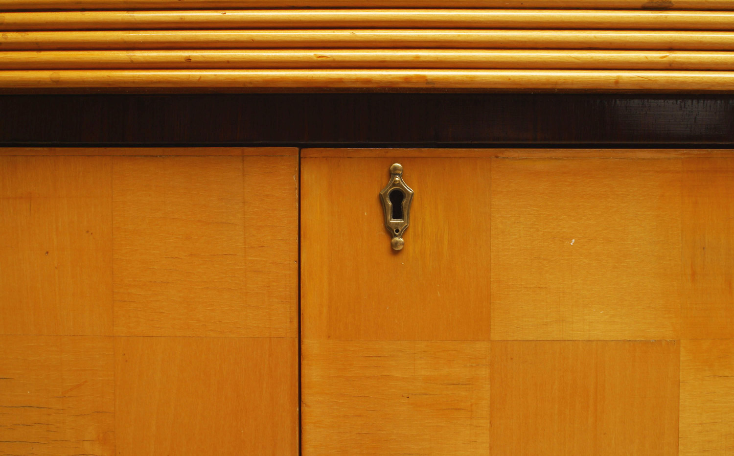 Style: Mid-Century Materials & Techniques: Mahogany, maple Category: Cabinets & Case Goods, Dining Room