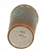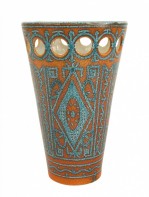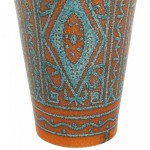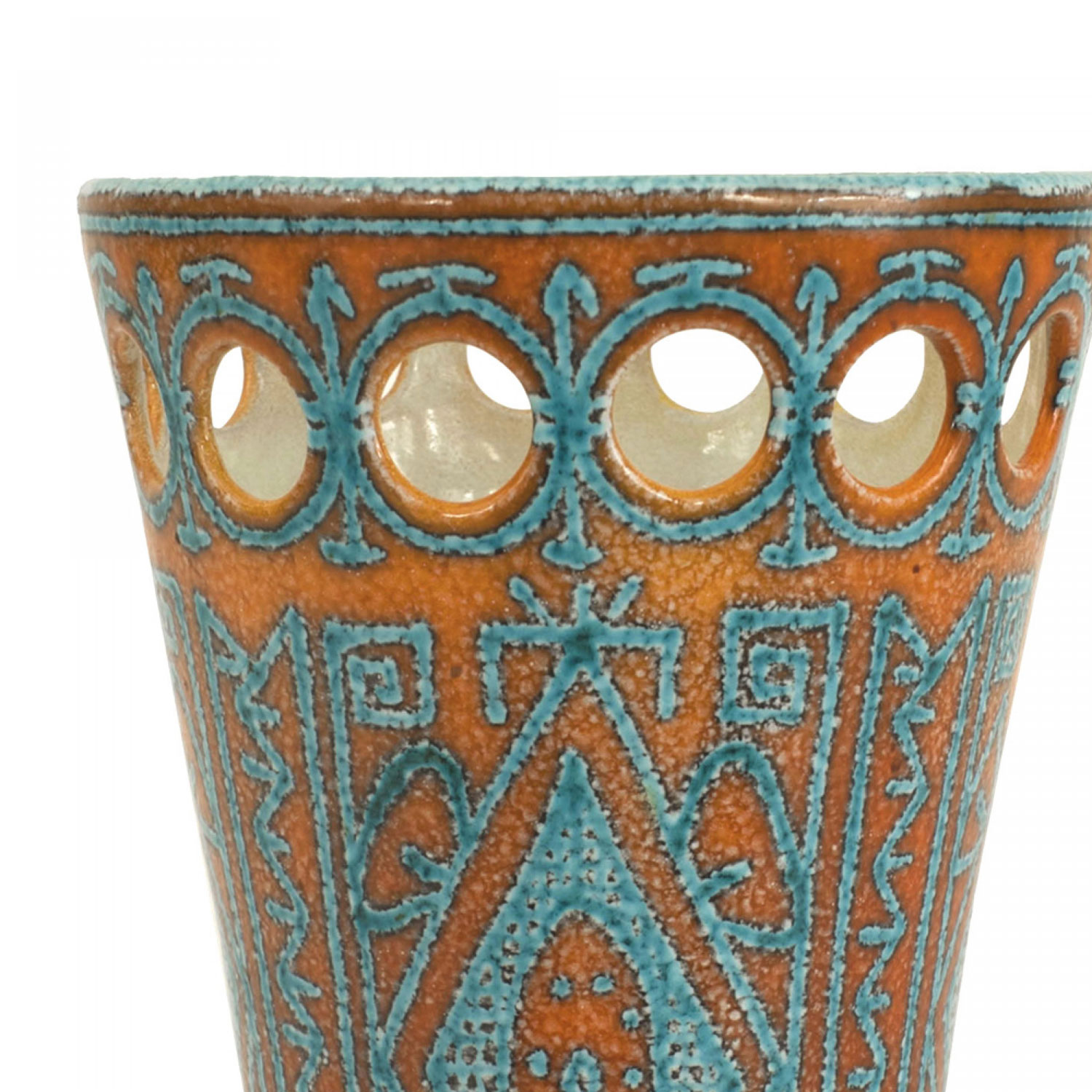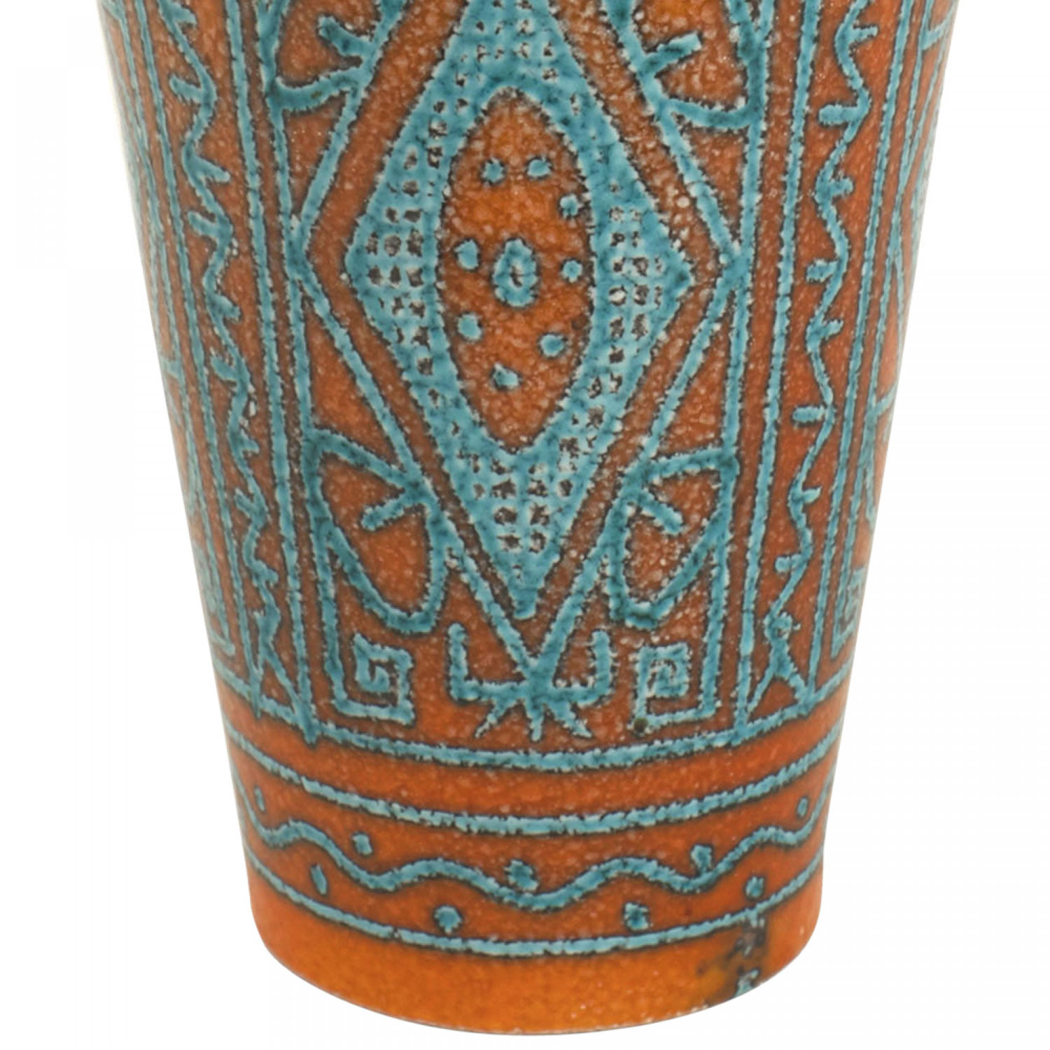 Italian 1960s orange and turquoise conical shaped porcelain vase with geometric pattern and a design of open circles (signed: ITALY 520/226)