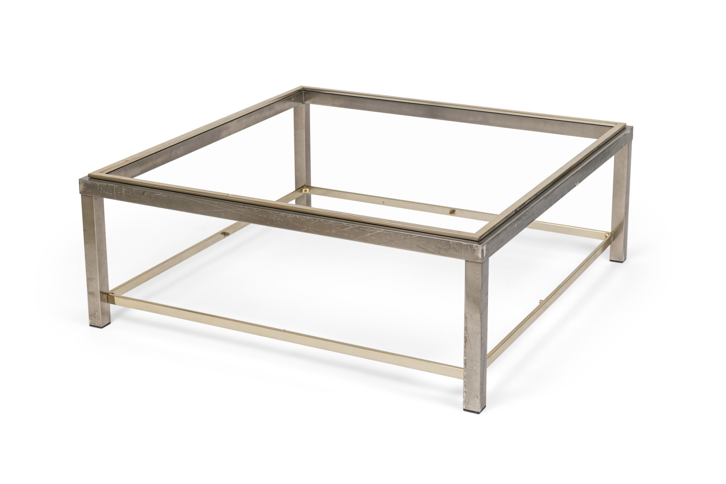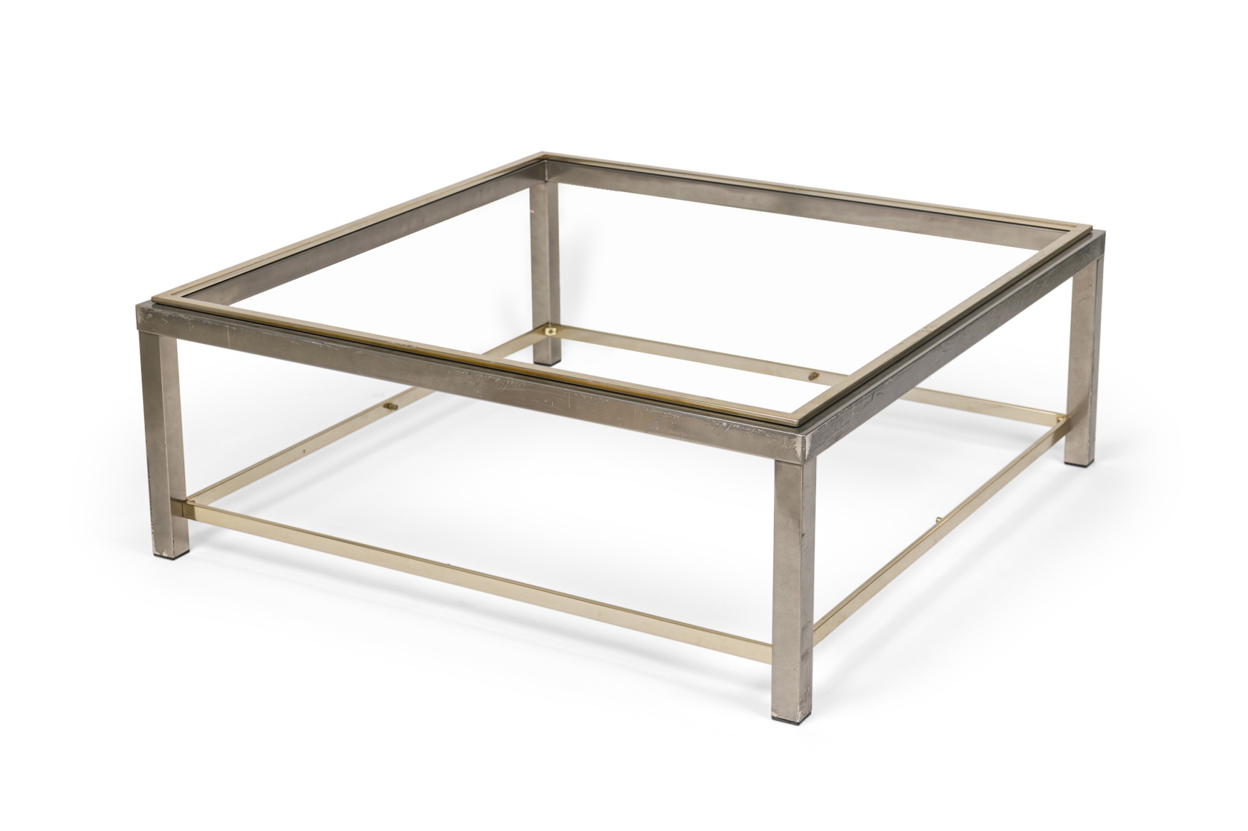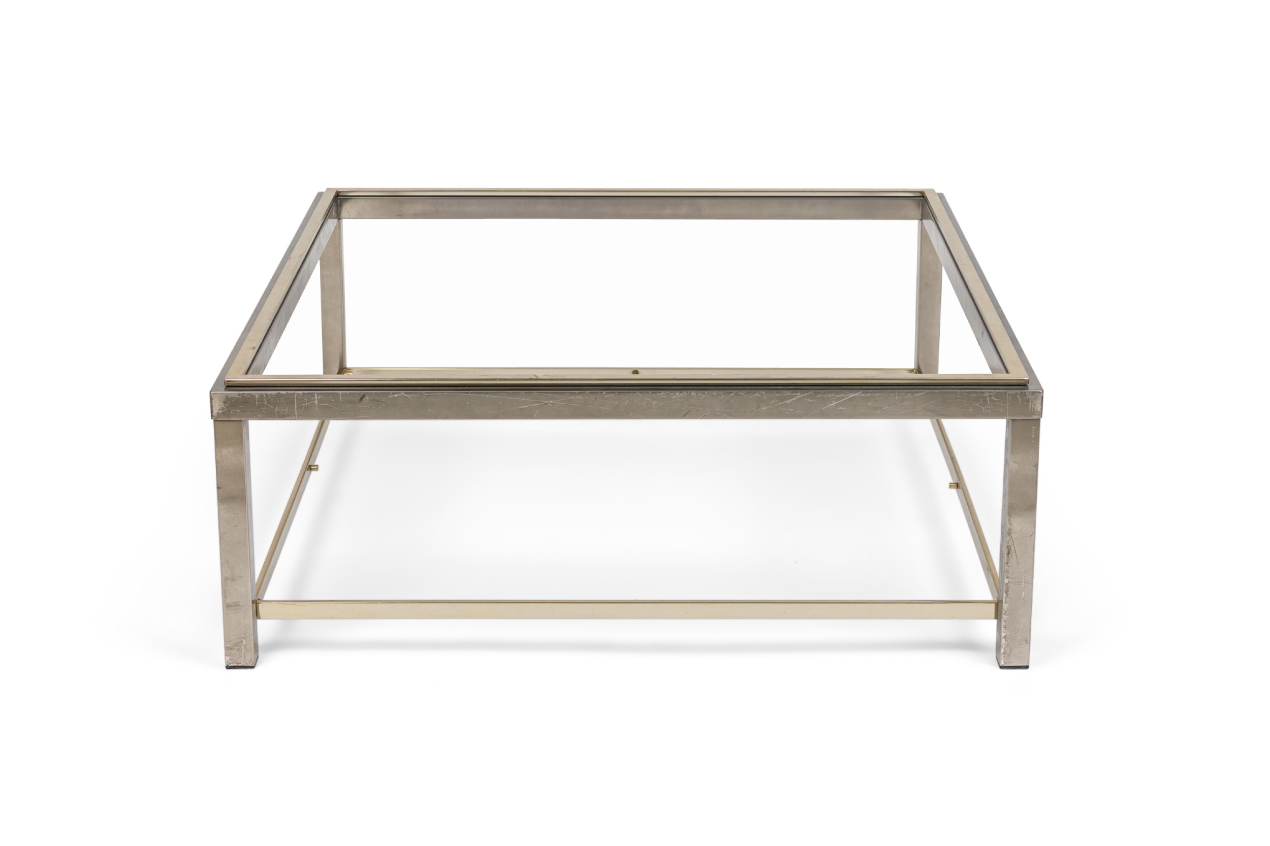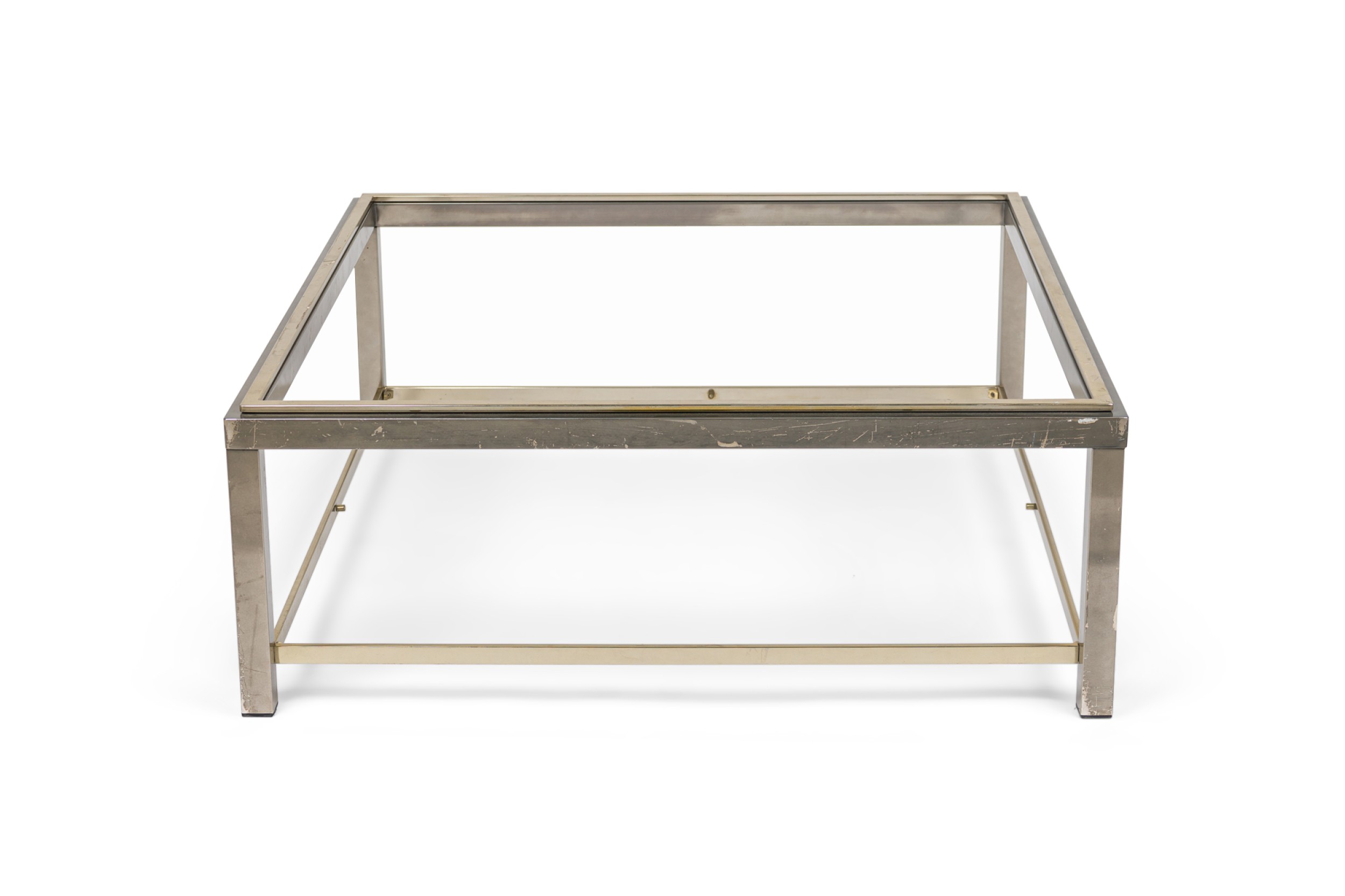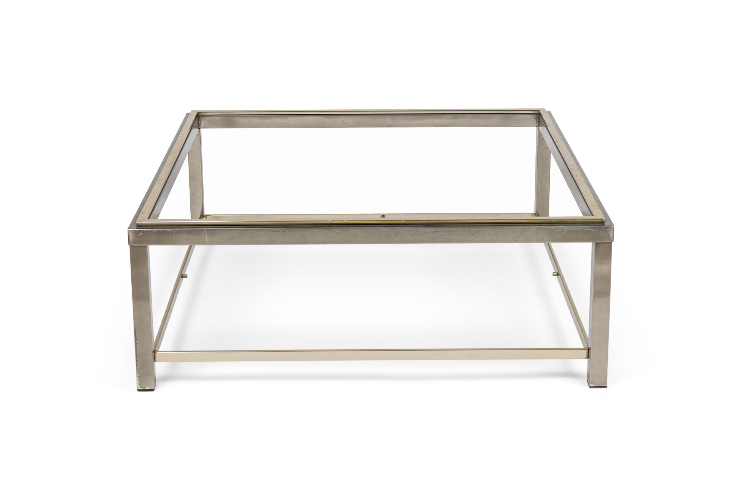 Italian Mid-Century brass and steel sqaure coffee table with a glass top and shelf (ROMEO REGA) (MISSING TOP-CAN BE FABRICATED)