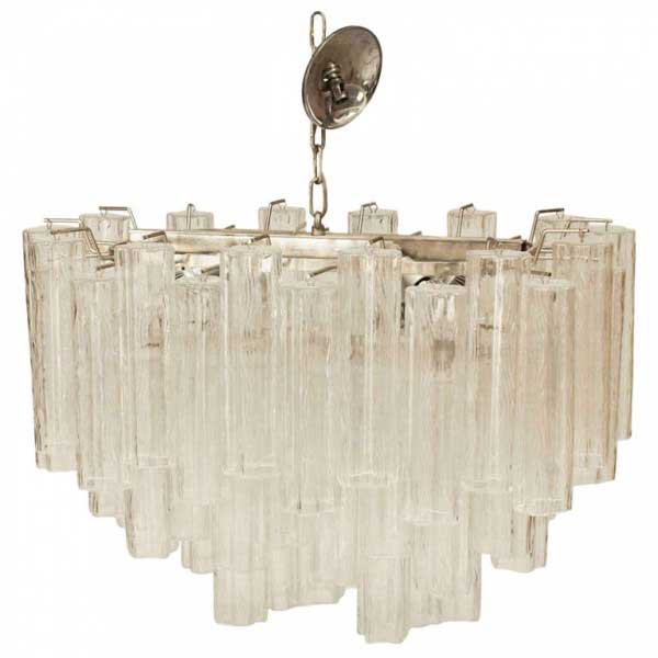 Italian Mid-Century round Camer glass chandelier that drops in a circular pattern. Each pieces of glass are cut in a triangular shaped