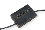 Italian Mid-Century Tall Brass and Black Lacquer trimmed floor lamp with a rectangular top light fixture and base connected by a narrow rectangular column