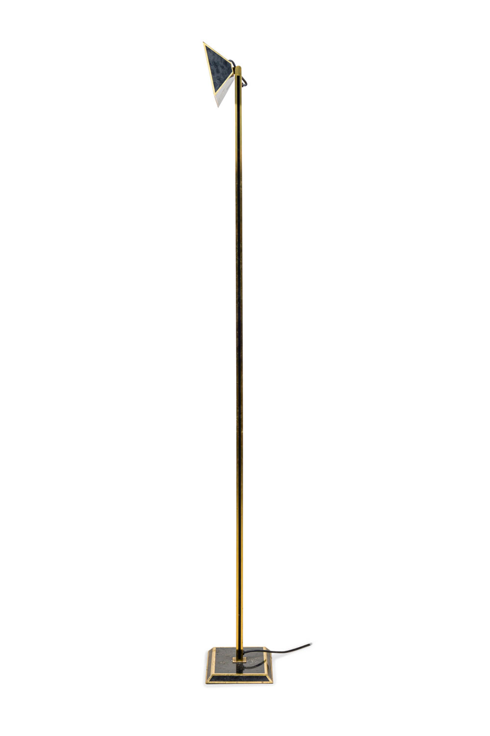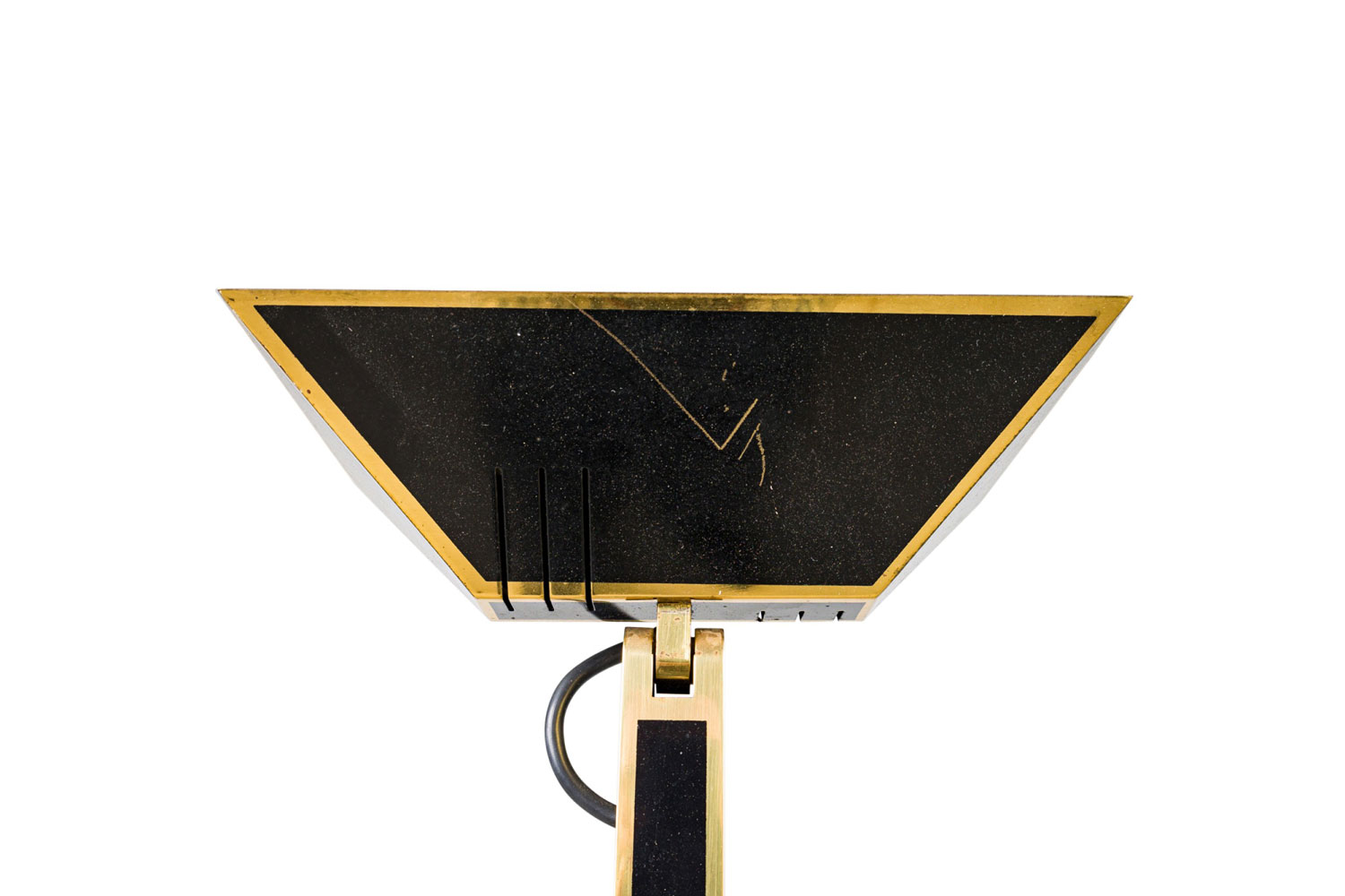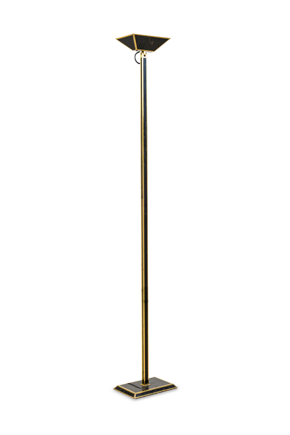 Italian Mid-Century Tall Brass and Black Lacquer Torchiere