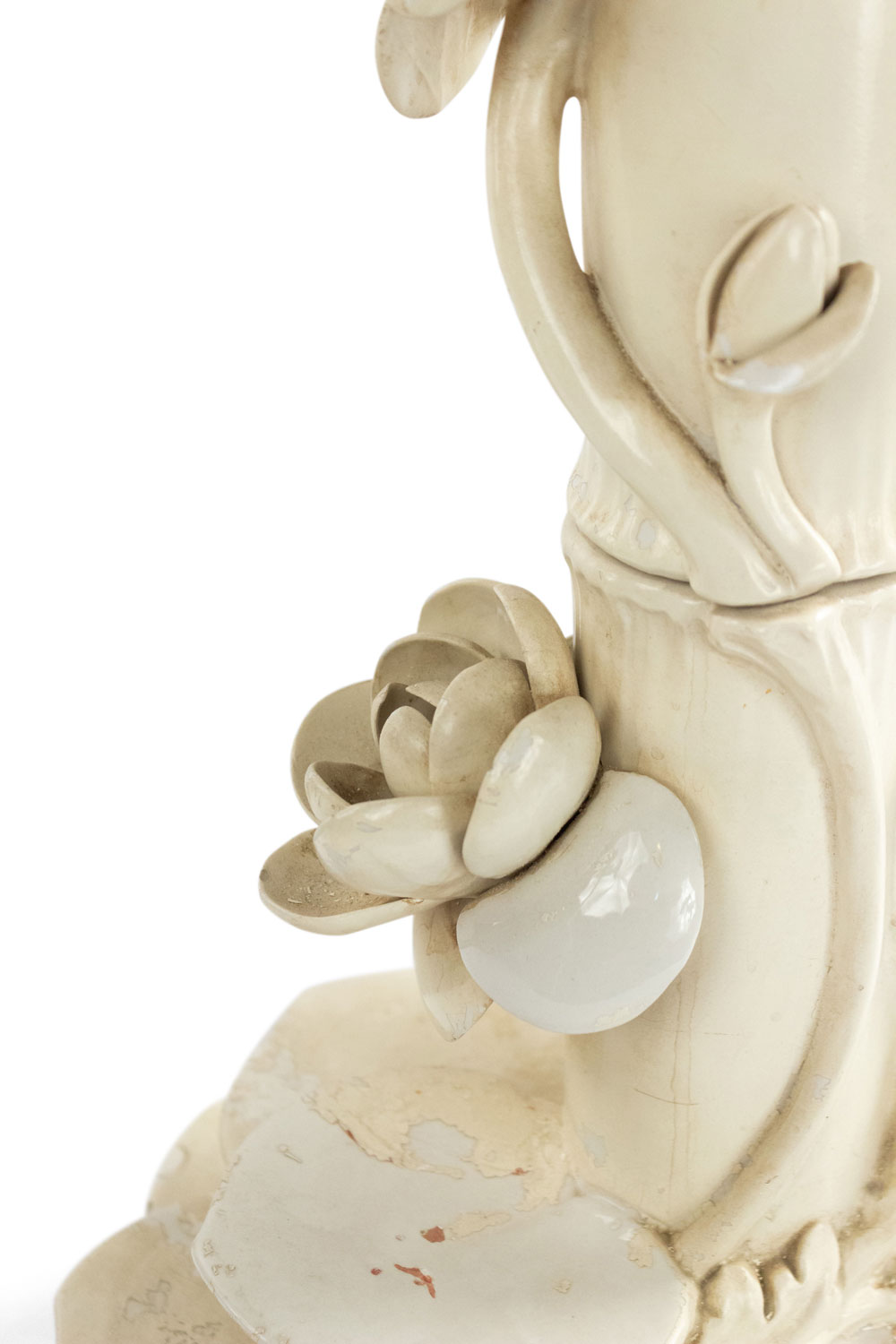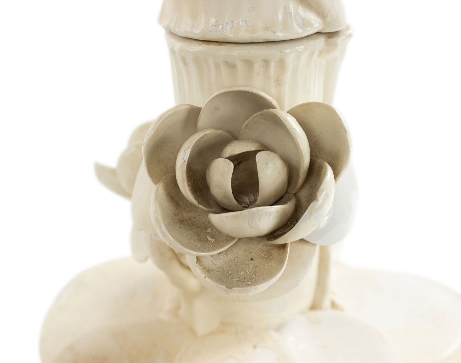 Italian Mid-Century White Porcelain Floral Table Lamp