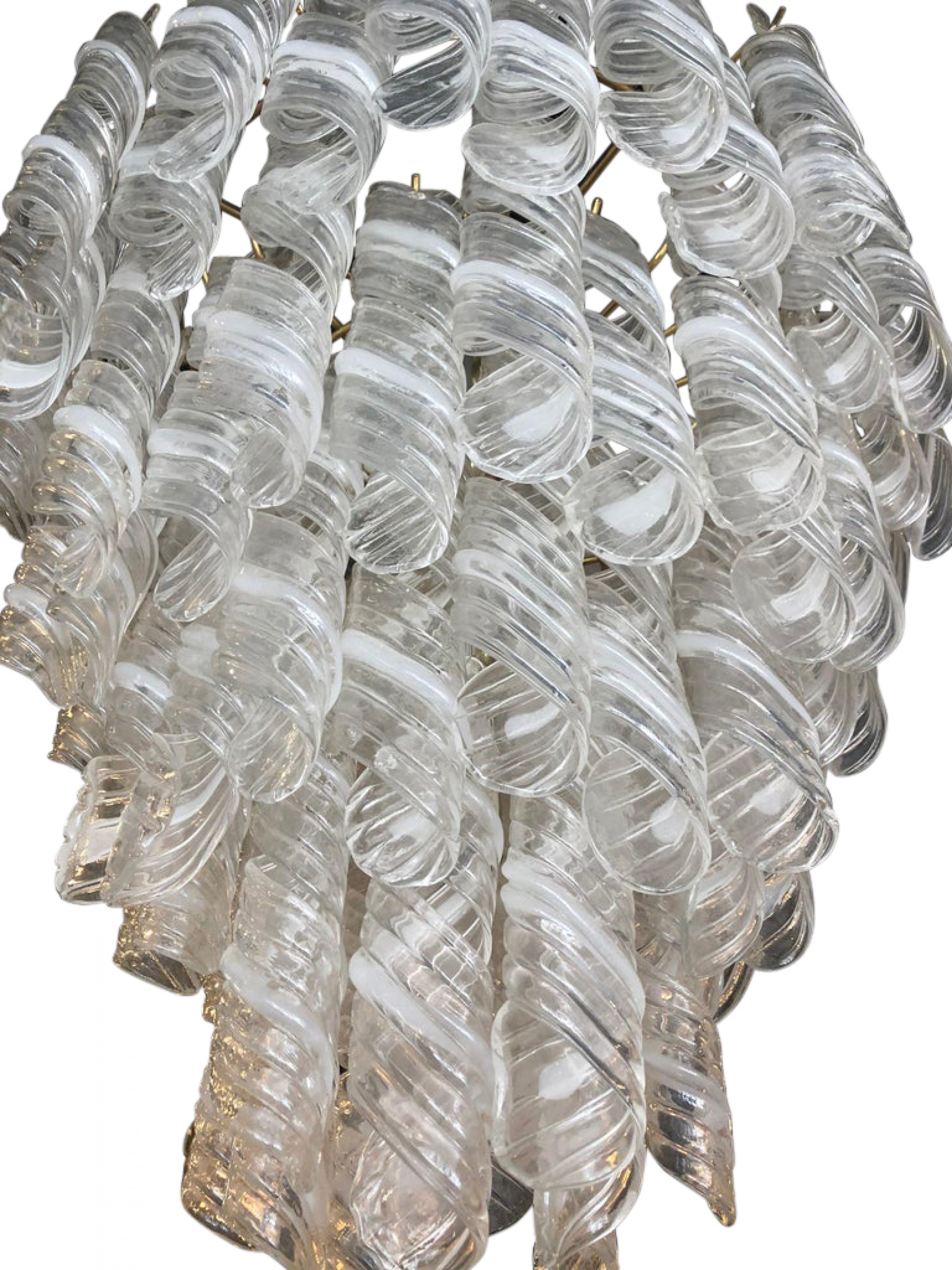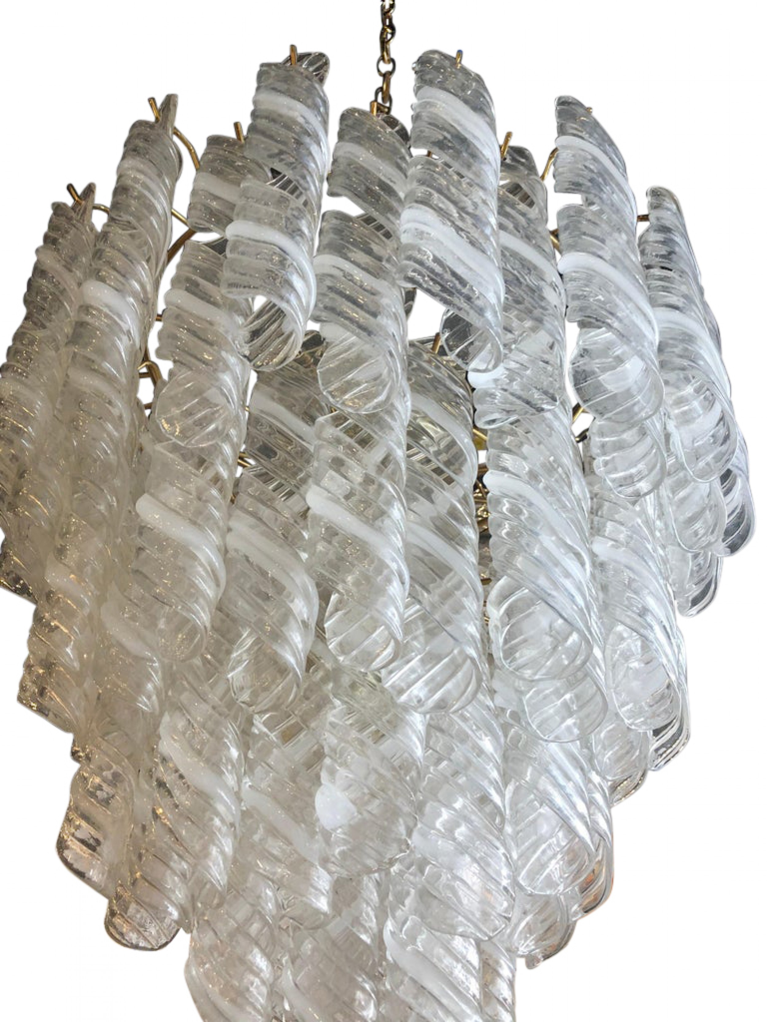 Italian Modern Hand Blown Glass and Polished Nickel Chandelier, Mazzega