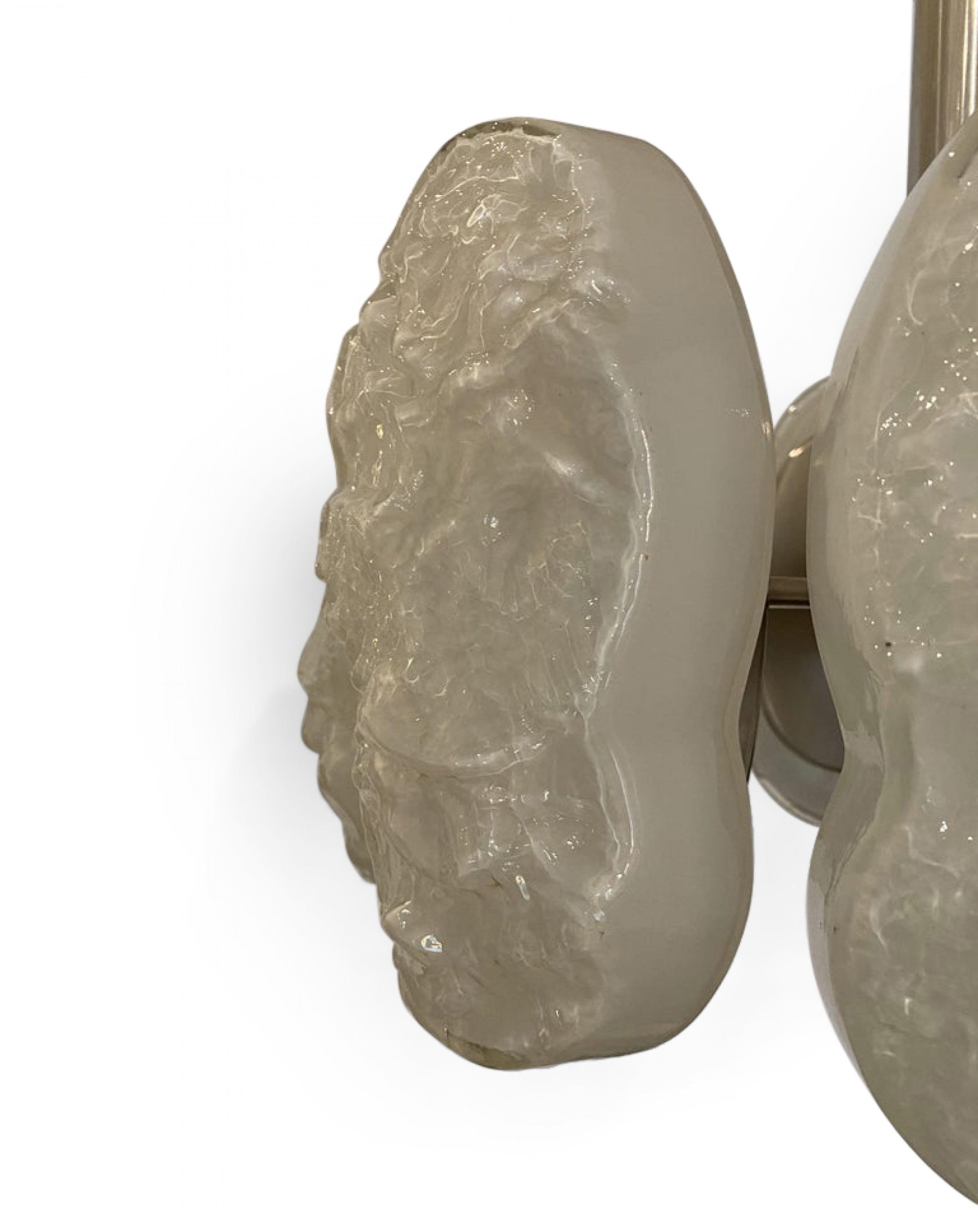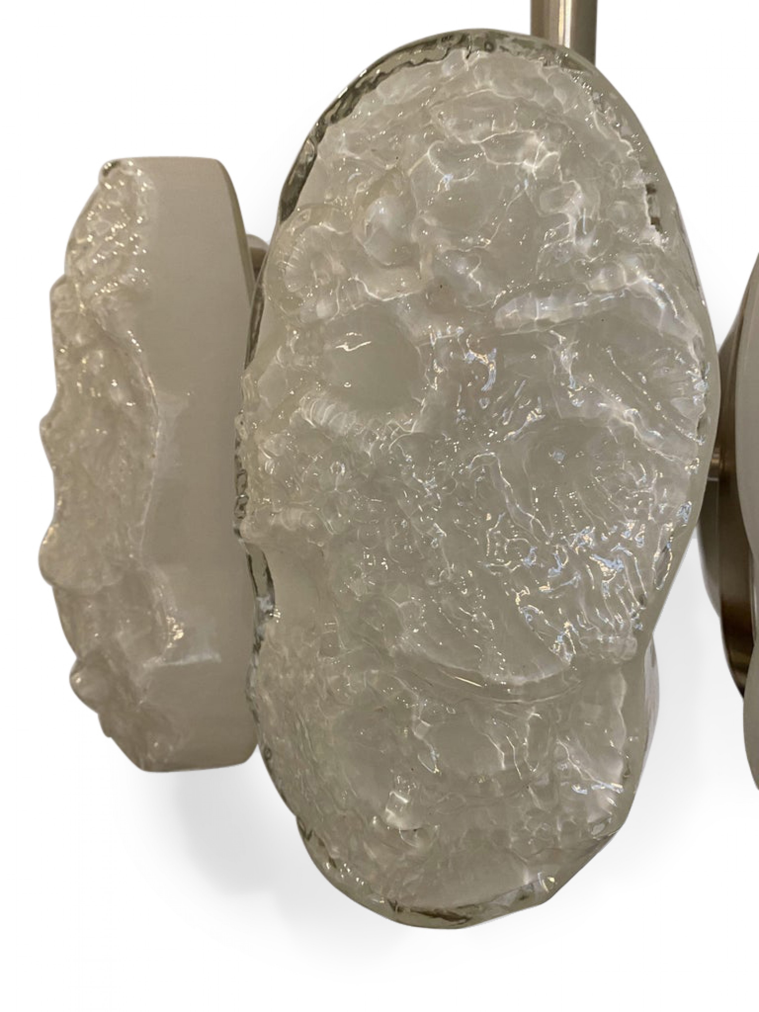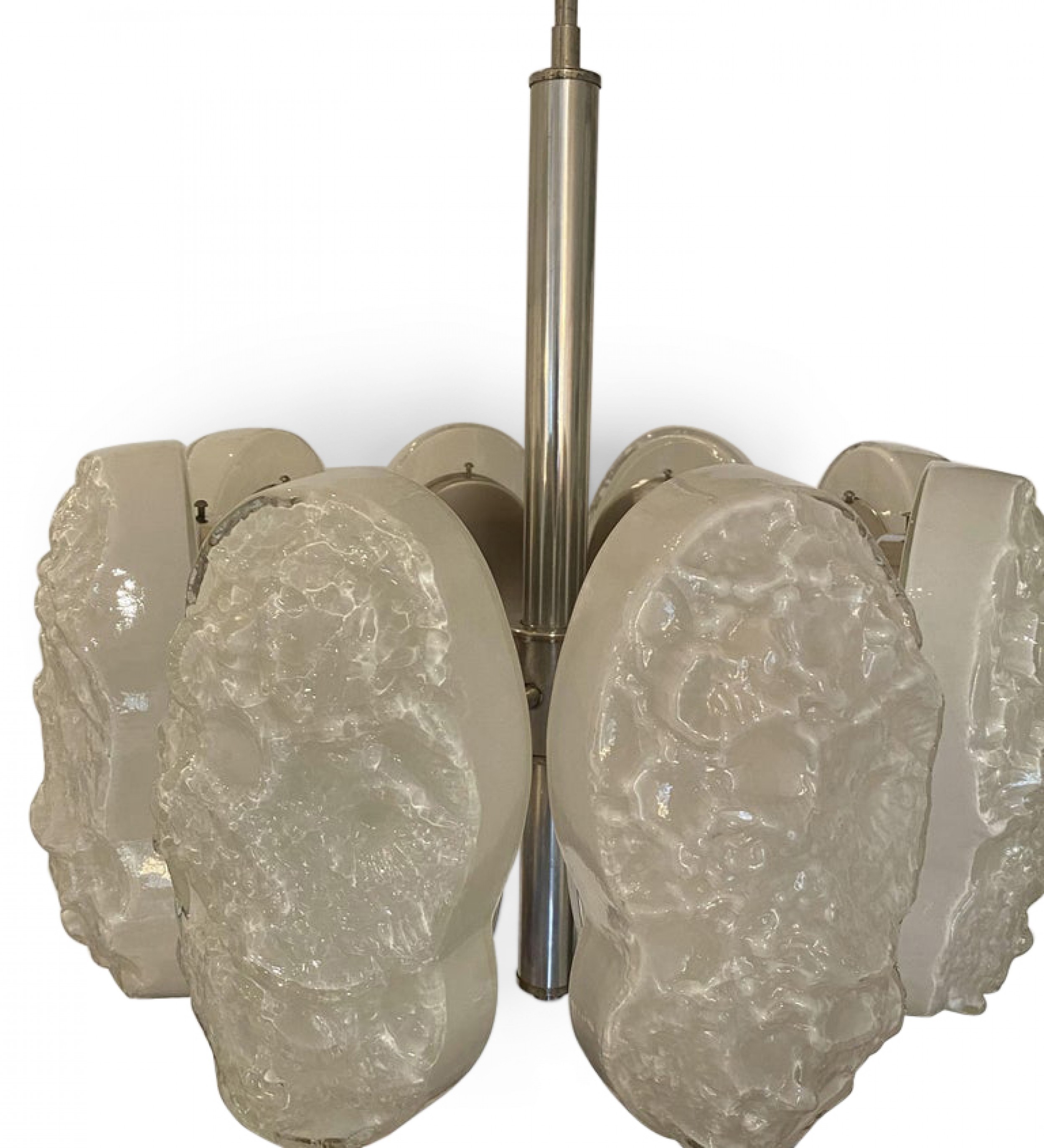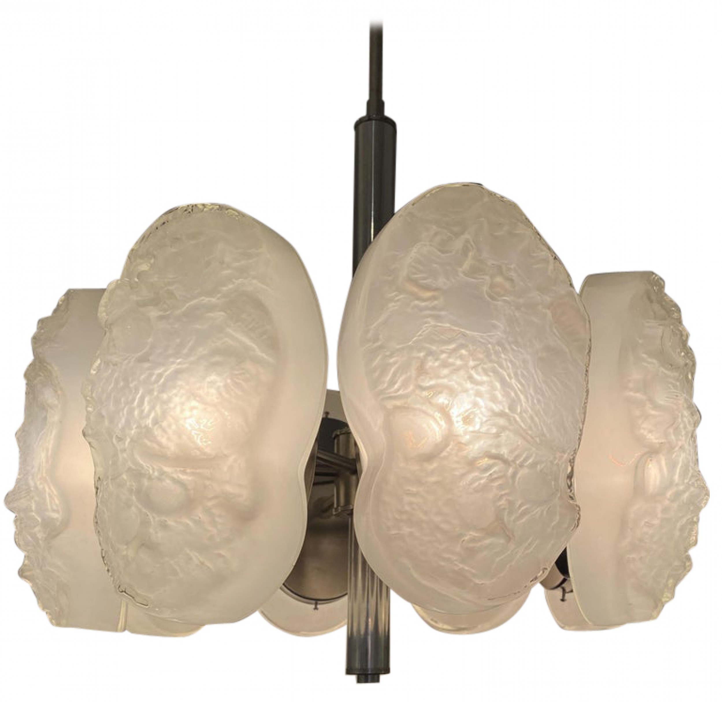Italian Modern Nickel and Hand Blown Glass 6 Arm Chandelier, Mazzega.