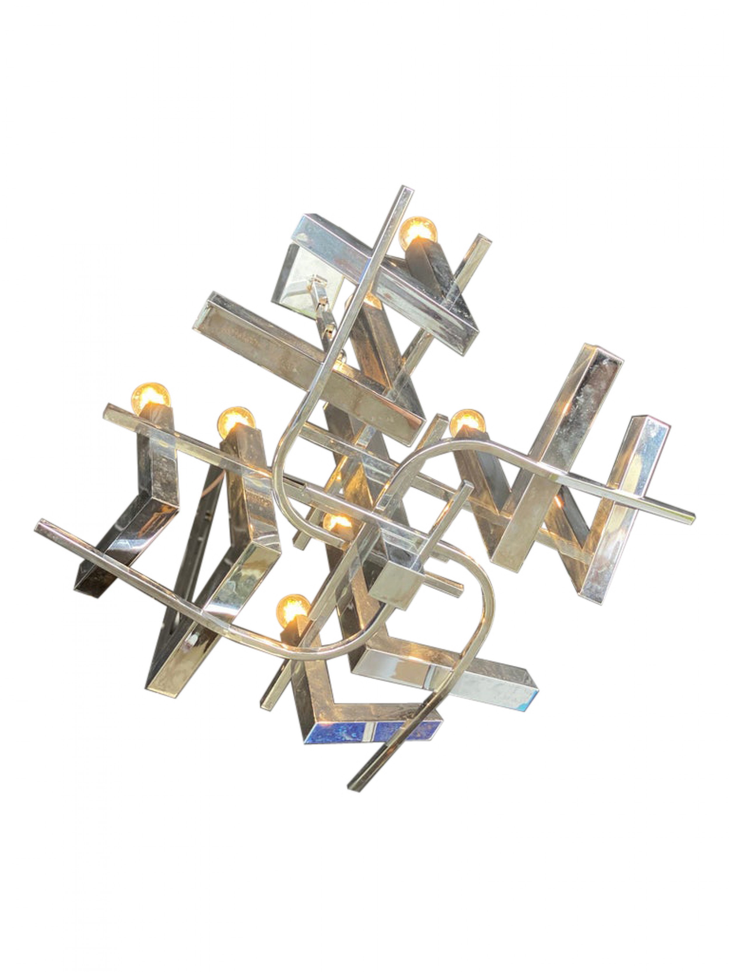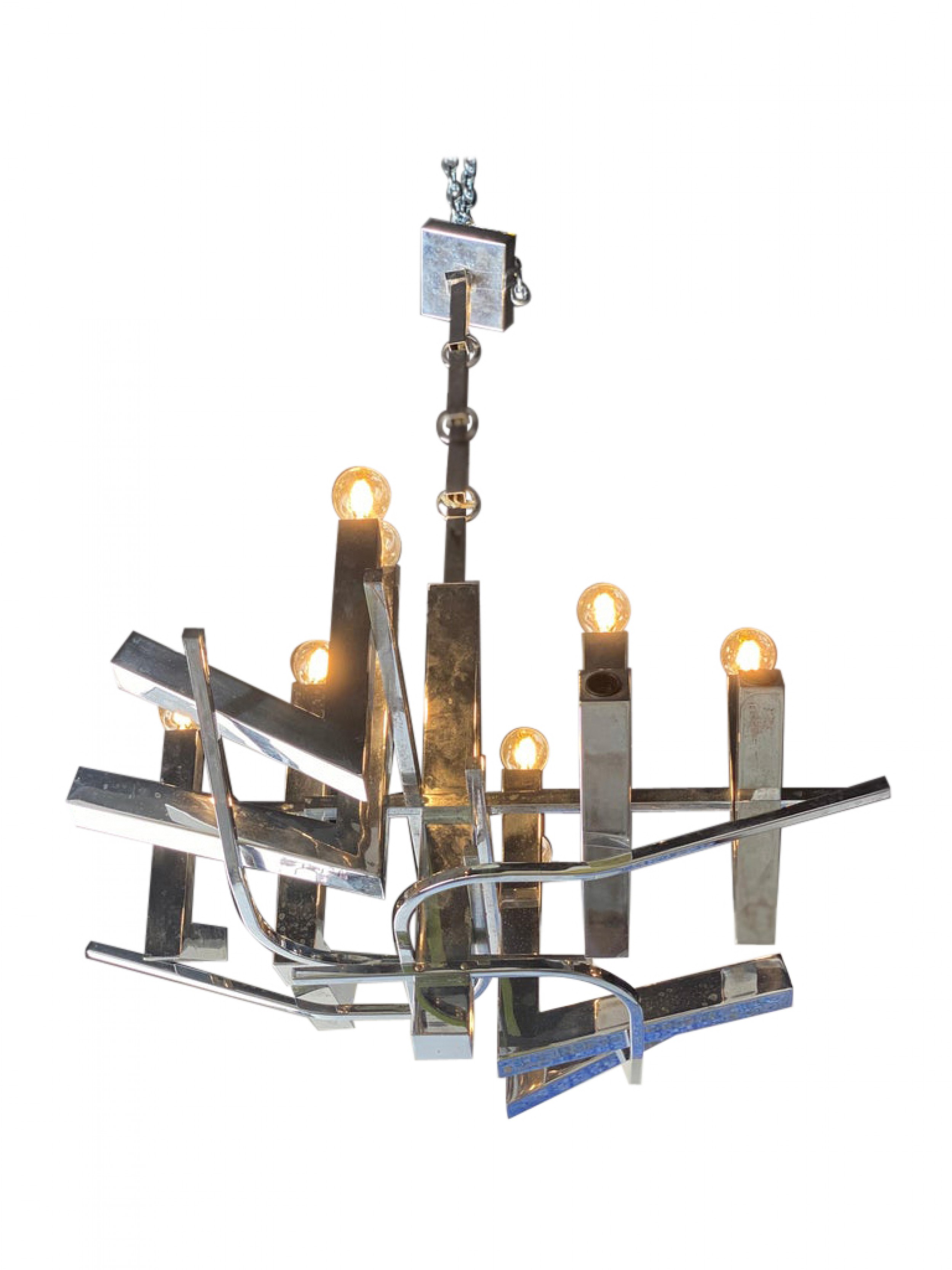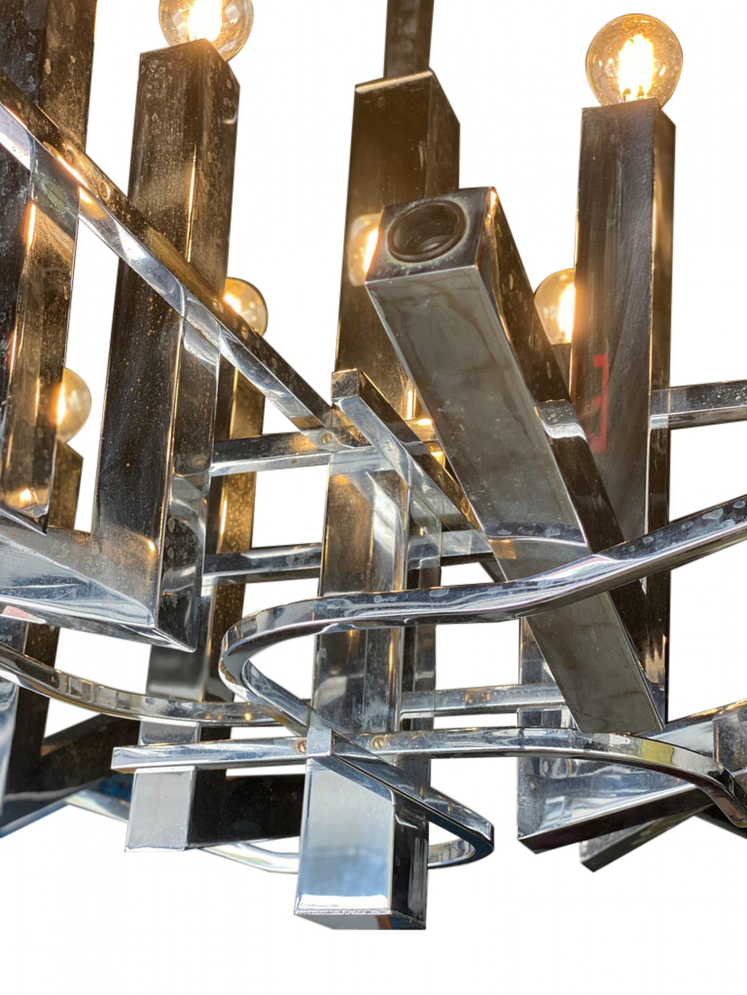 Italian Modern Polished Chrome 12-Light Chandelier, Sciolari.