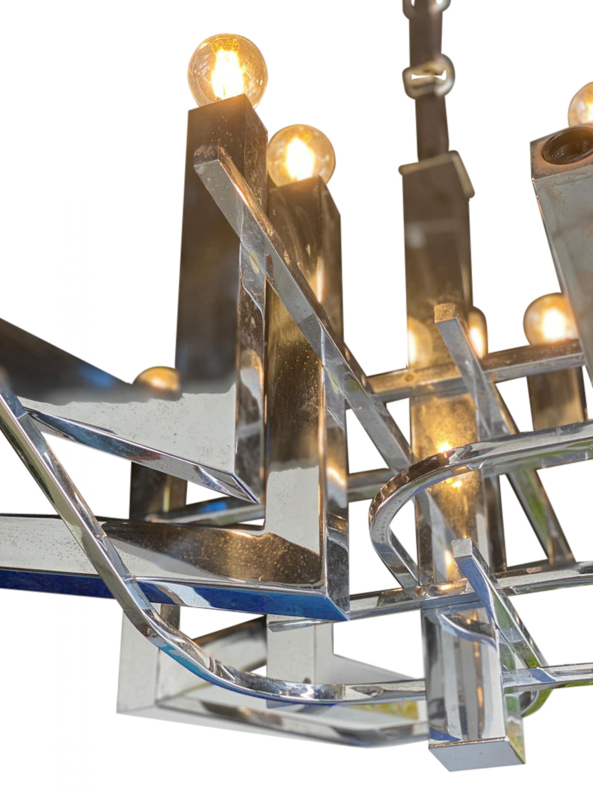 Italian Modern Polished Chrome 12-Light Chandelier, Sciolari