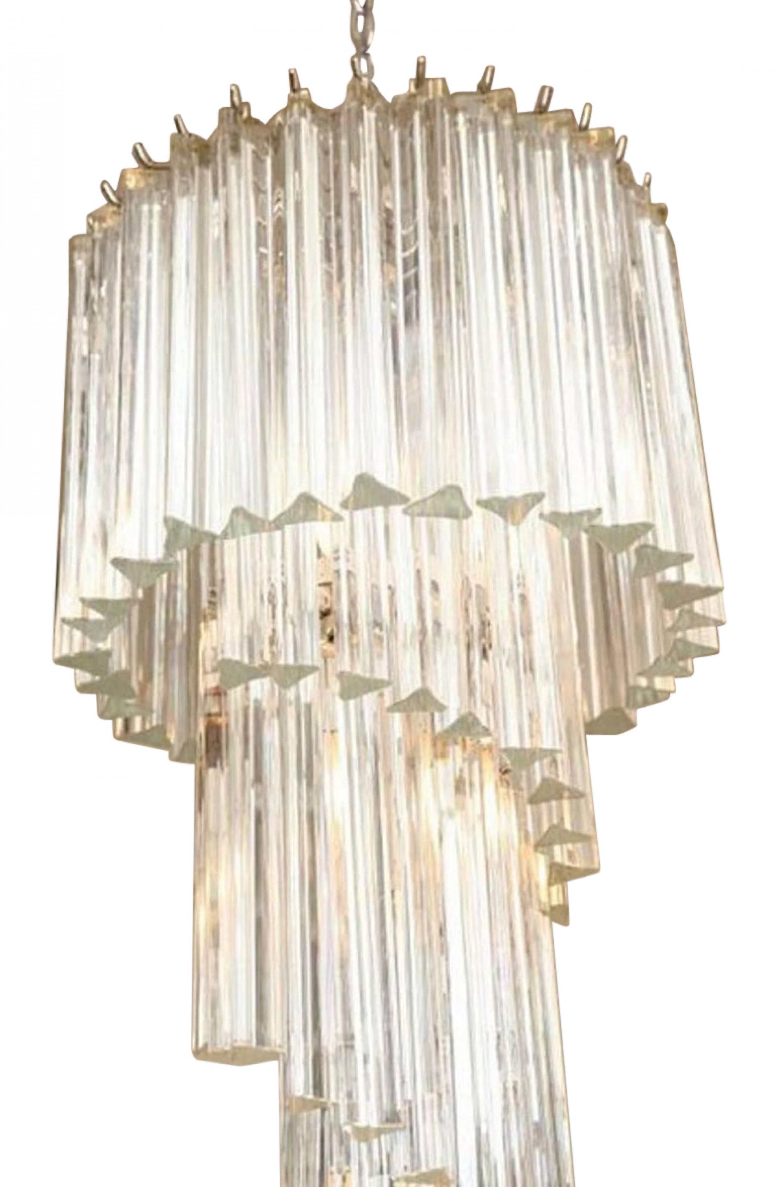 Italian Modern Tiered Prism Venini Nickel & Crystal Chandelier, 1960s
