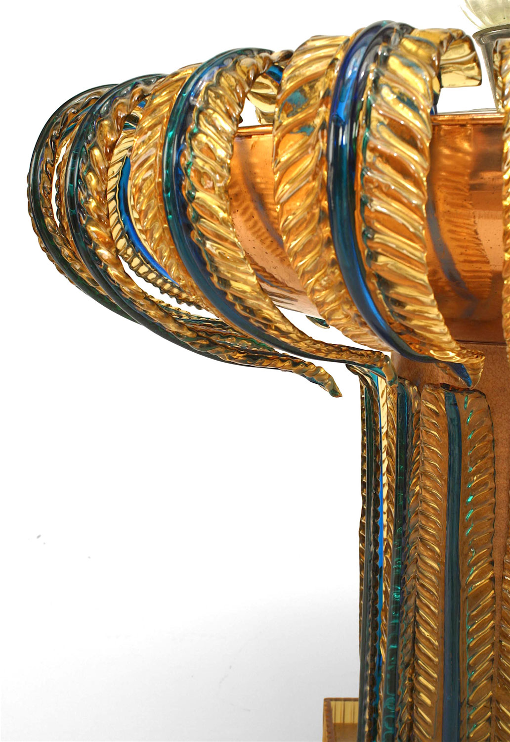Mid-Century Italian Murano Amber and Blue Glass Fountain