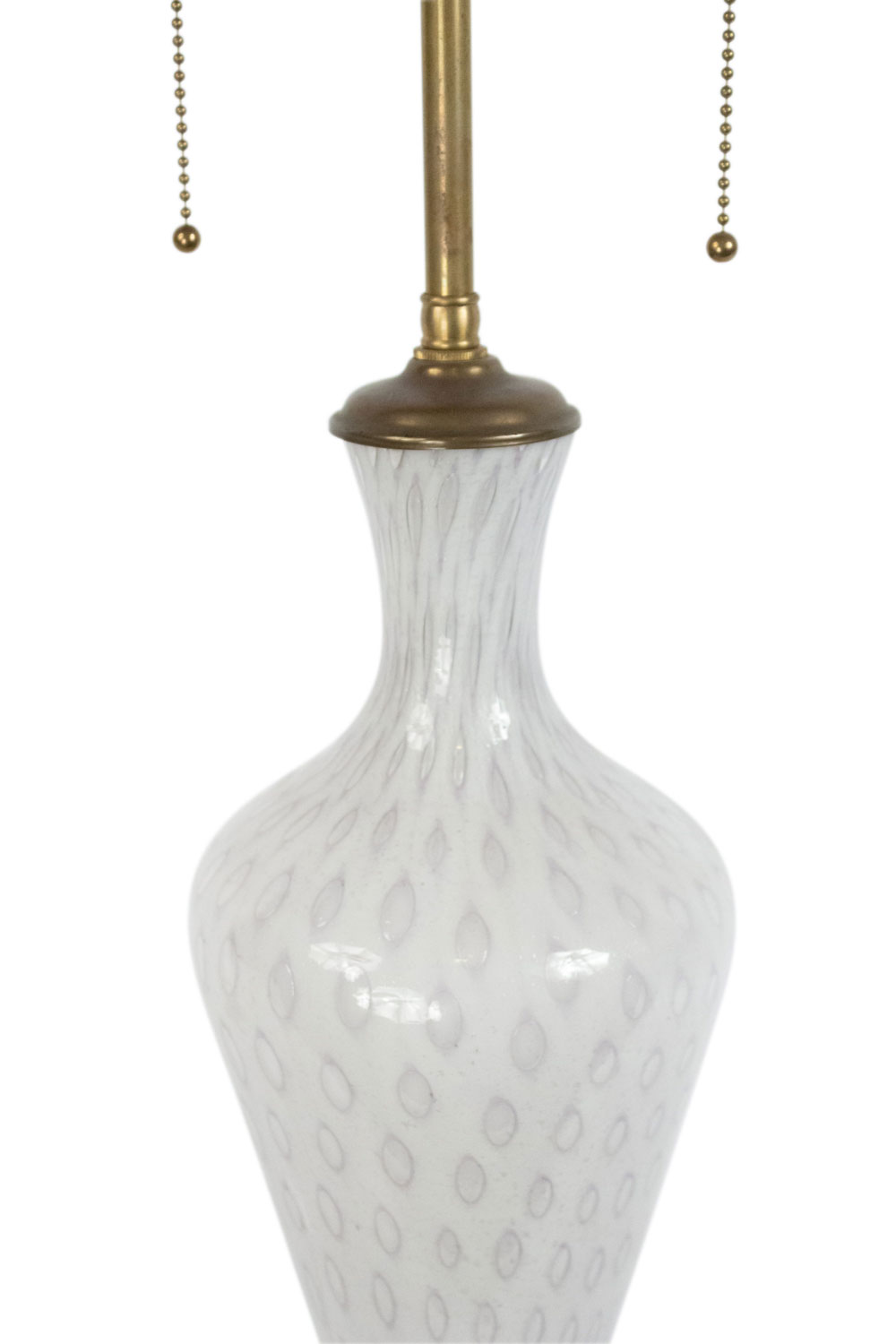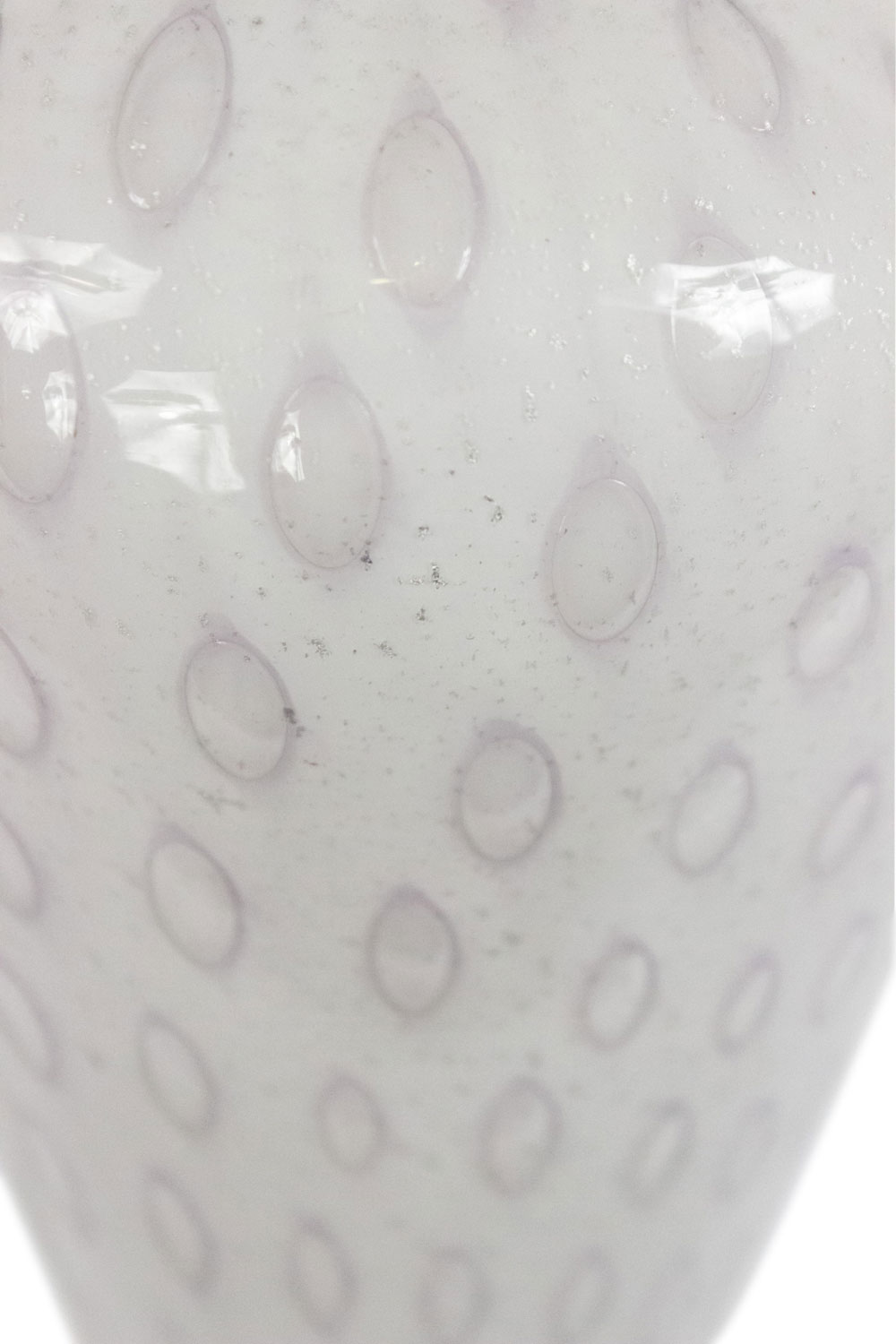 Italian Murano white with a purple shading glass table lamp with internal bubble design on a wood base.