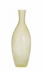 Italian Murano style Mid-Century bottle-shaped art glass bud vase with a tapered neck and a yellow swirl design (signed and dated 05)