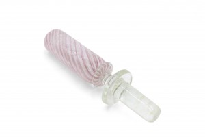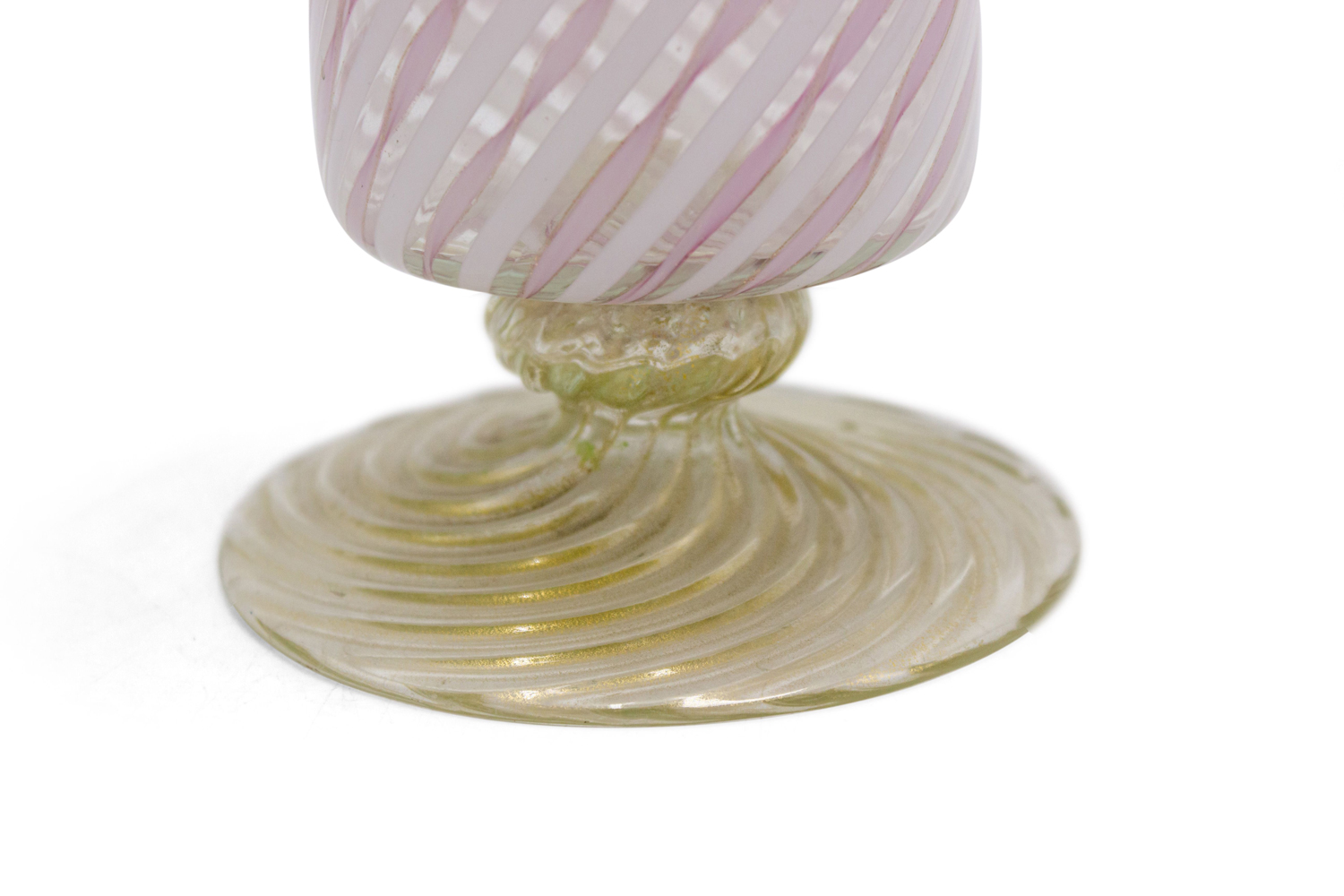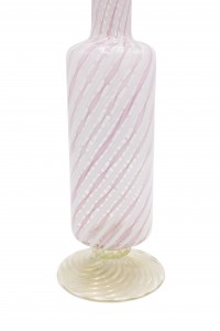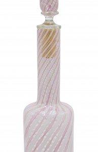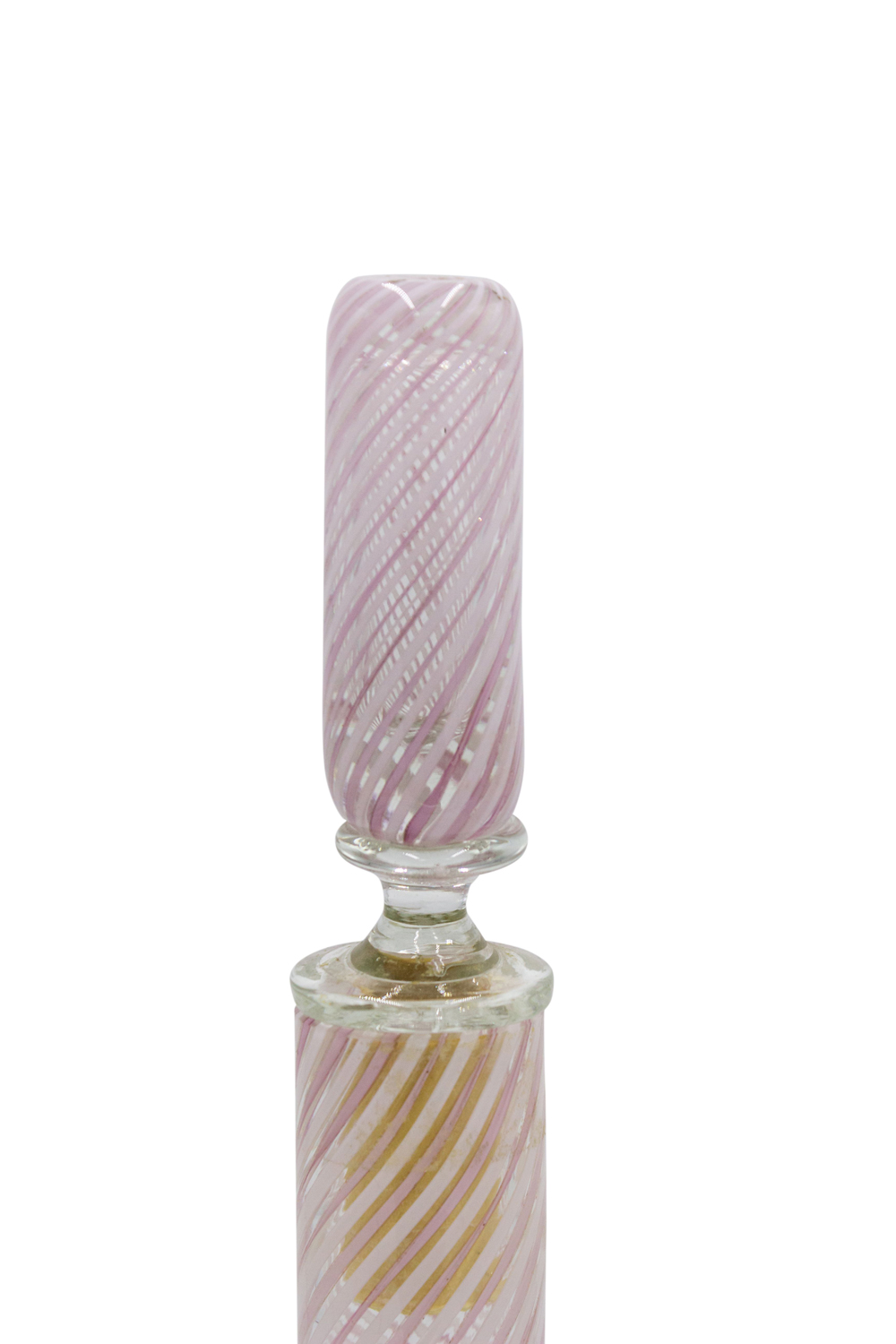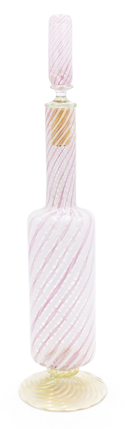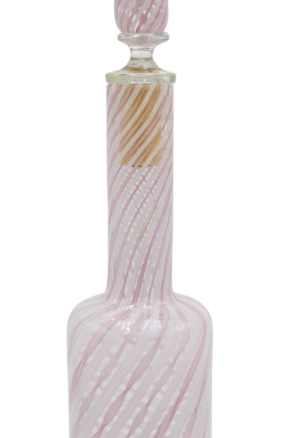 Italian Mid-Century (1940s) Venetian Murano "RIGADIN" pink and white swirl candy-stripe design glass cylindrical shaped decanter with stopper..