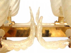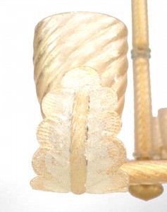 Italian Murano gold dusted "PULEGOSO" bubbled glass & brass chandelier of rectangular form with 10 swirl design shades & center stem and feather branches.