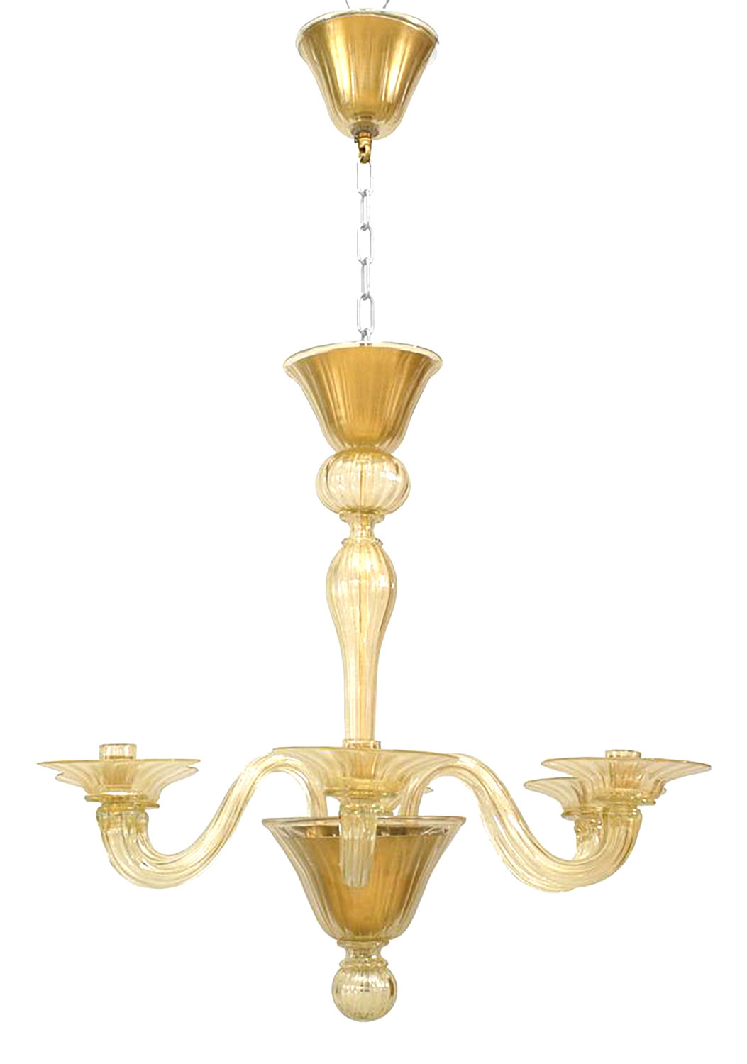 Italian Murano Sommerso Gold Dusted Glass Chandeliers