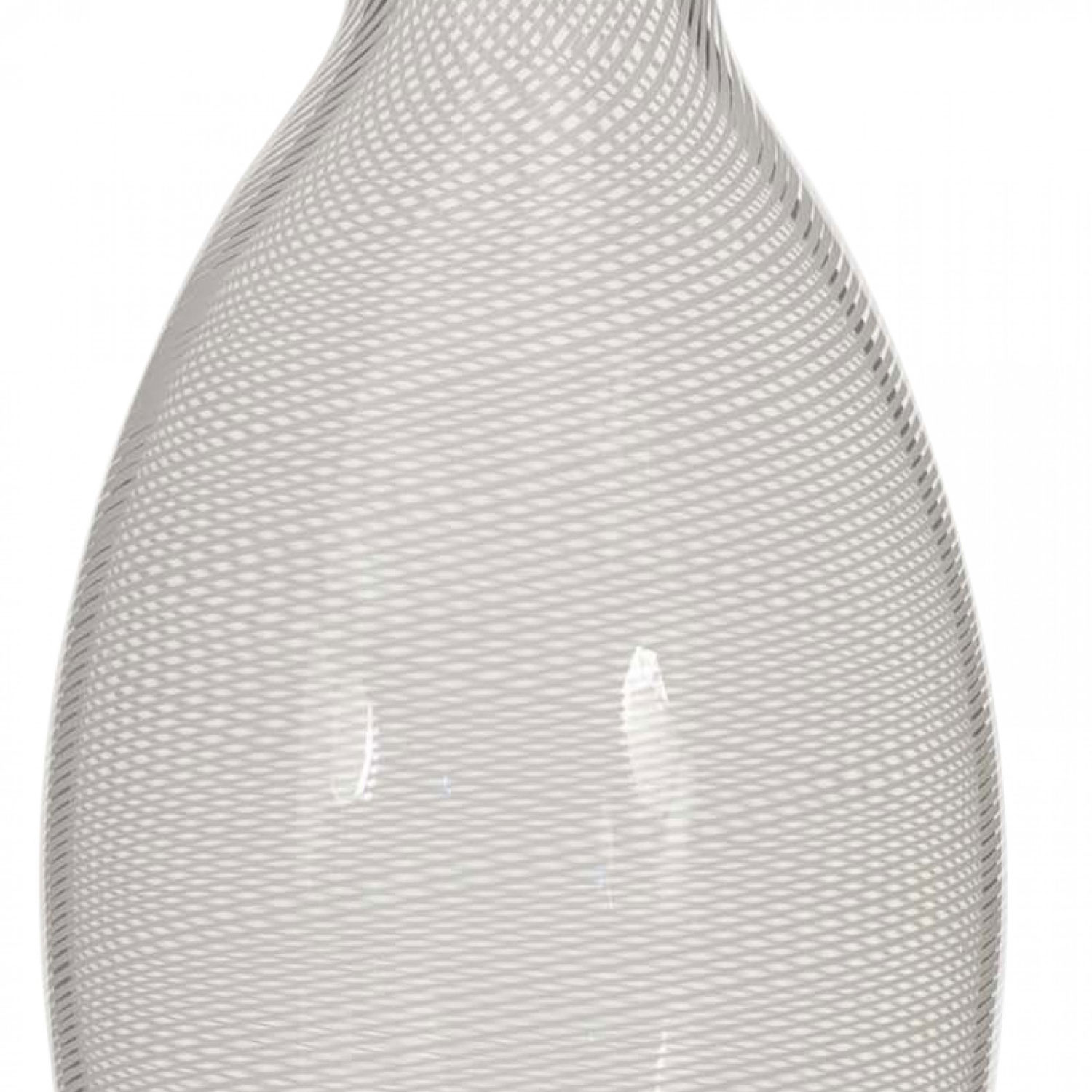 Italian Murano style Mid-Century bottle-shaped art glass bud vase with a tapered neck and a white swirl design (signed and dated 2006)