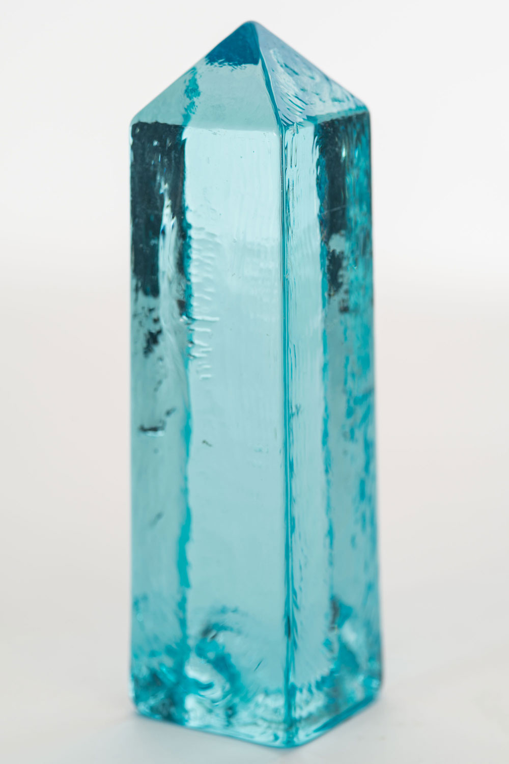 Vintage Italian obelisk-shaped turquoise-tinted textured Murano glass paperweight (chipped on bottom) (VINCENZO NASON)