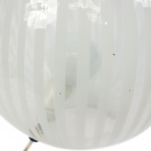 Italian Post-War Design 1970s Venetian Murano clear glass shade table lamp with white stripe design mounted on a ebonized base. Original Murano label (VISTOSI)