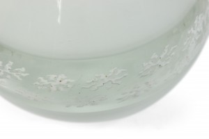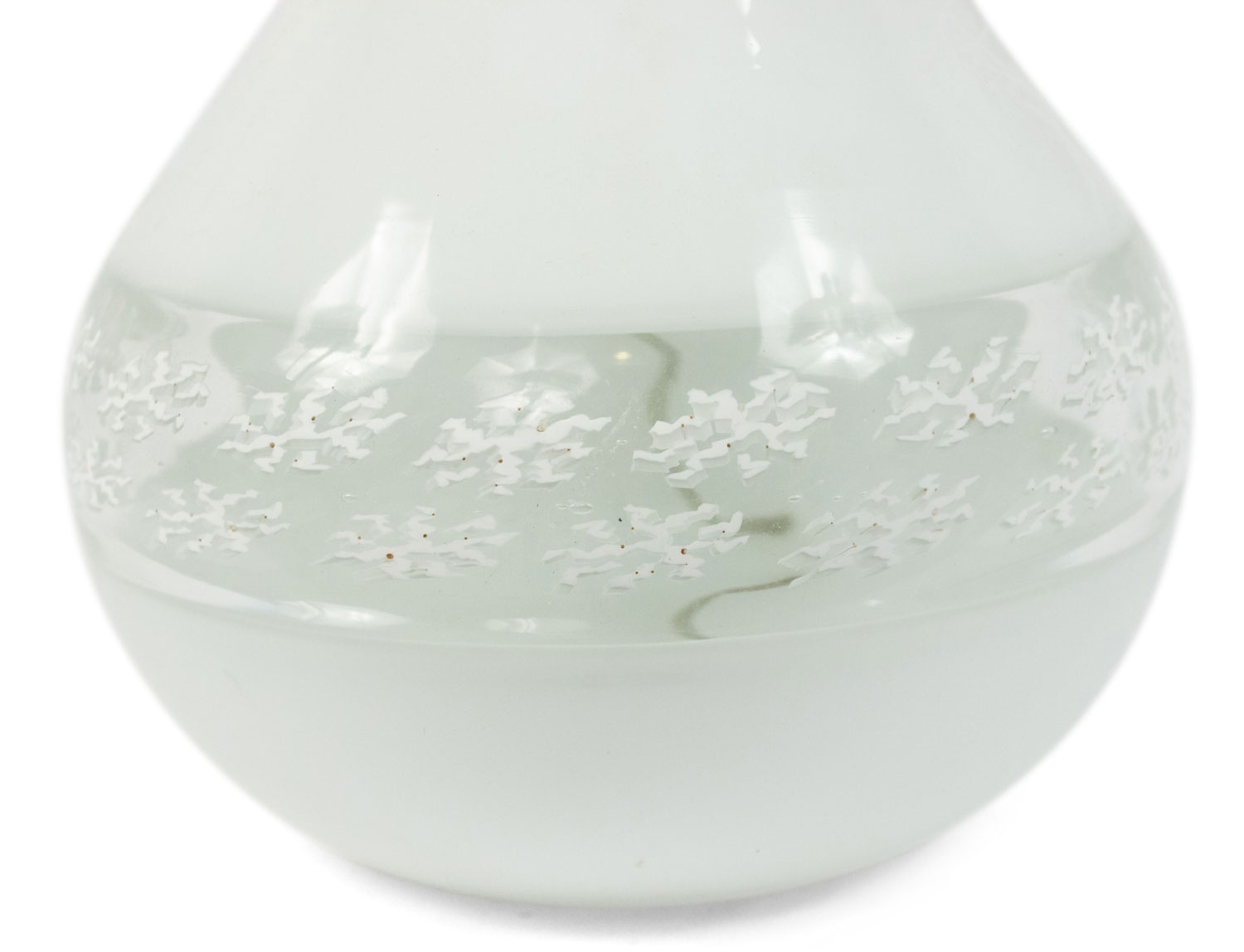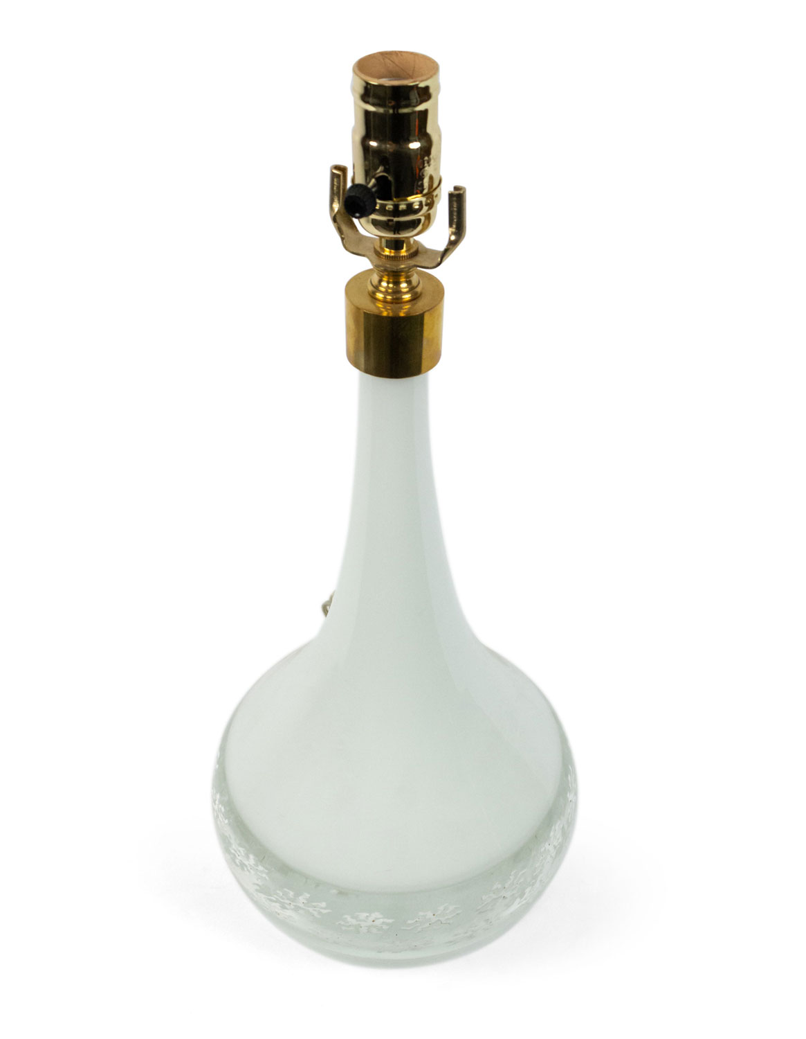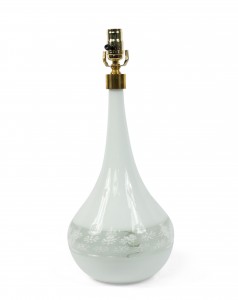 PAIR of Italian Venetian Murano 1940s white glass lamps with a bulbous base having a banded design (PRICED AS PAIR).