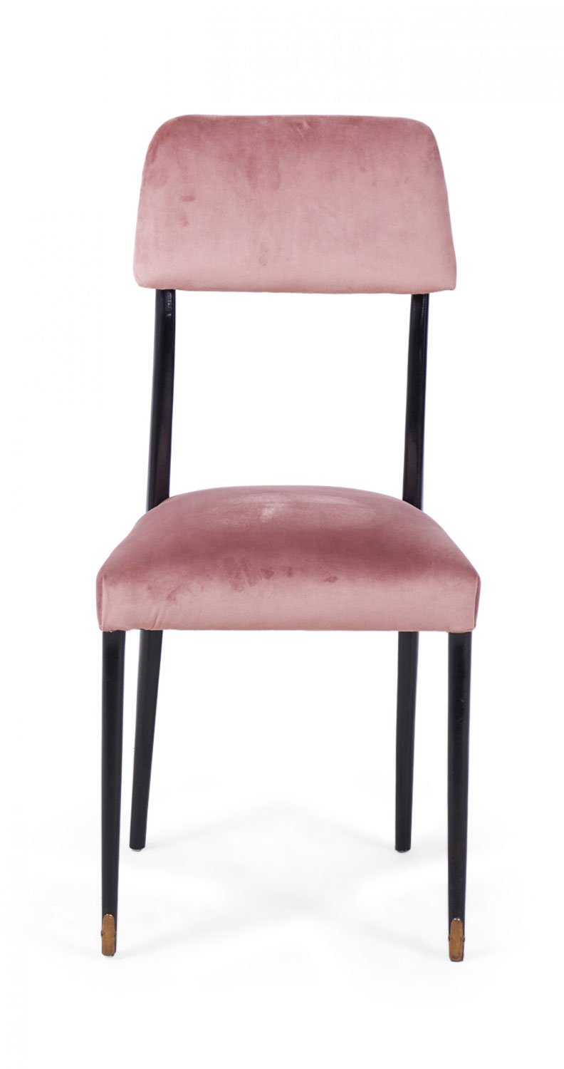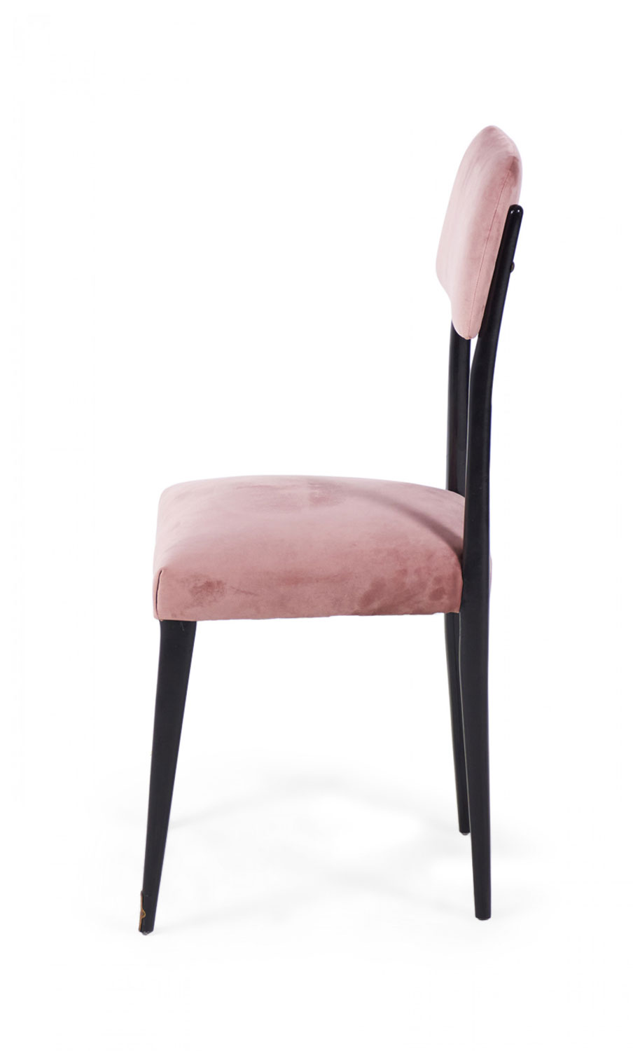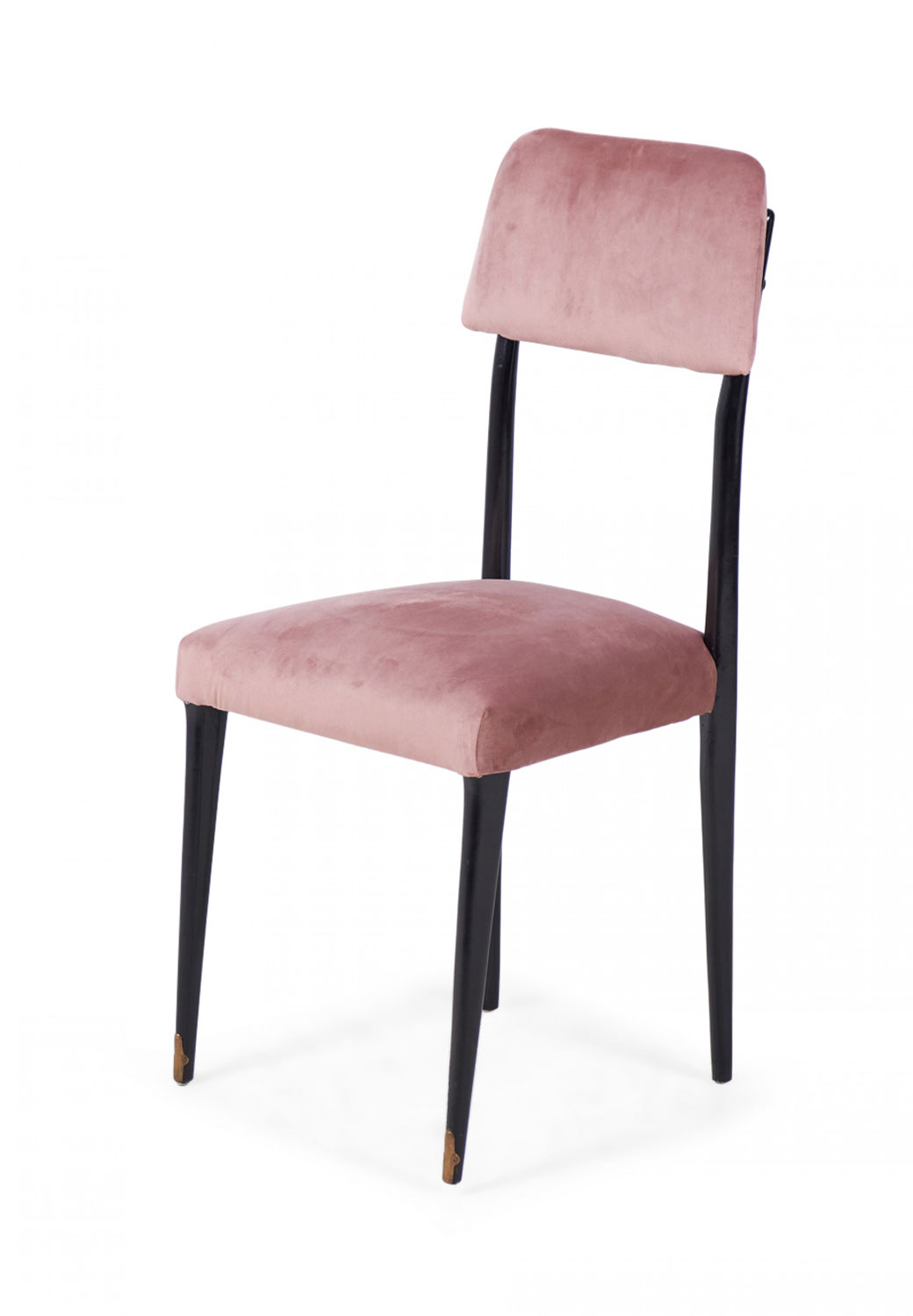 Set of 6 Italian Mauve Pink Velvet Upholstered Ebonized Side Chairs