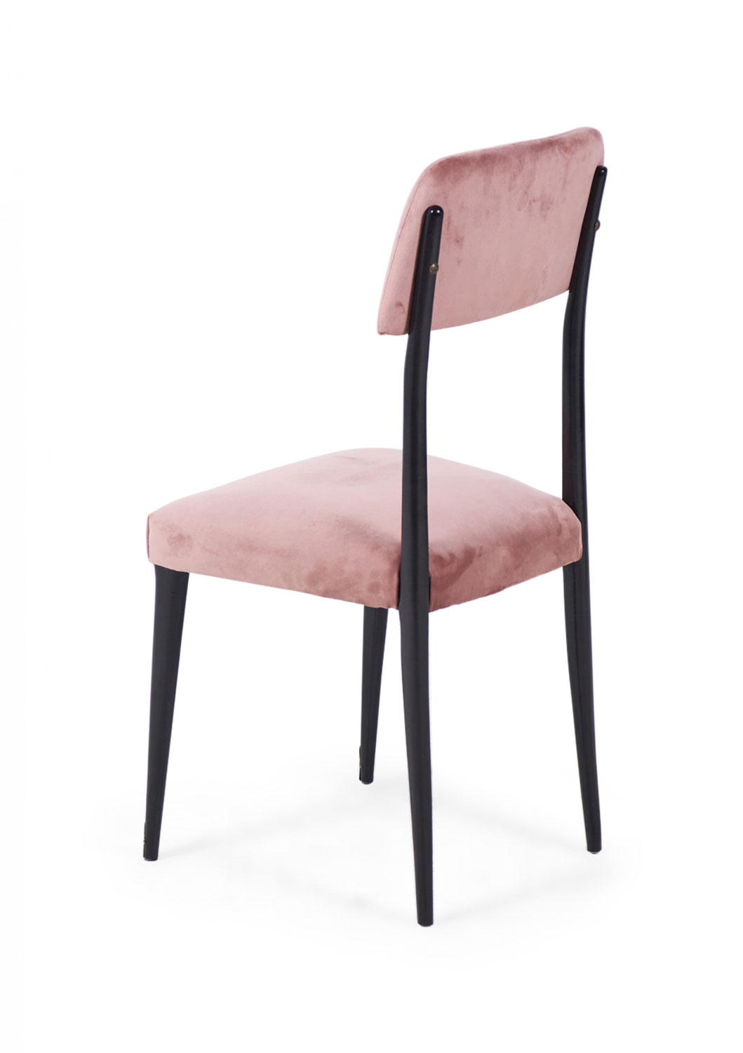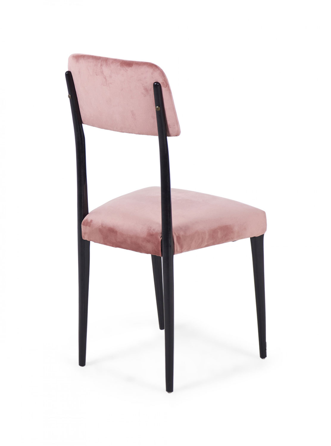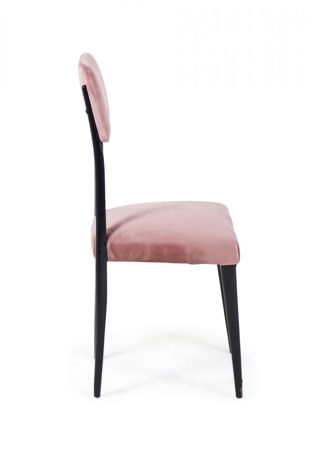 Set of 6 Italian Mauve Pink Velvet Upholstered Ebonized Side Chairs