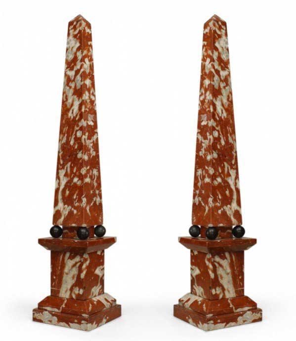 Italian Neo-classic-style (19/20th Century) black marble obelisk with red and green panel trim