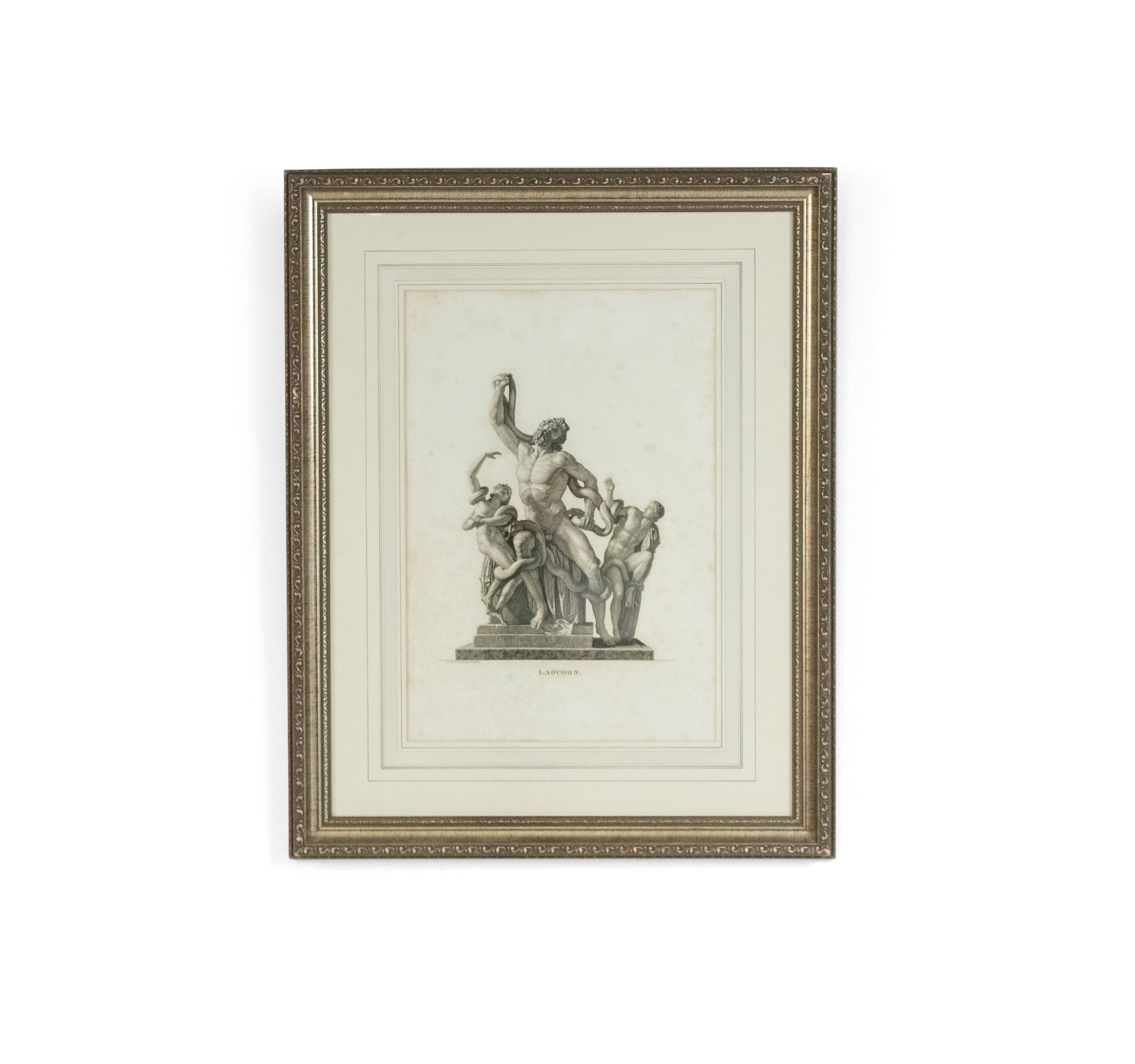 5 Italian (19th Cent) Neo-classic engravings depicting Roman statuary/mythological themes framed in silverleaf moulding with matting (PRICED EACH)